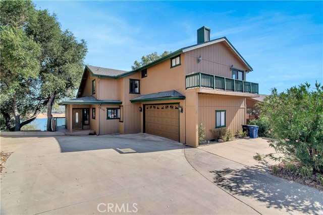 Escape to your private 7.7-acre retreat at Running Deer Ranch, located at Lake Nacimiento. This stunning home offers 2,356 sq ft of living space, perfect for both relaxation and entertaining. Step inside to an open-concept floorplan featuring a recently renovated kitchen with granite countertops, custom cabinetry, and stainless steel appliances. The dining room is bathed in natural light, thanks to its abundant windows and French doors. In the living room, you'll find a striking wood-burning fireplace with a gorgeous stacked stone surround and glass doors leading to an expansive deck, where you can soak in serene views of the cove. The original cabin, constructed from pre-World War II-era logs, now offers a unique and special blend of historic charm and stylish modern upgrades and conveniences. On the lower level, you'll also discover your primary retreat with a walk-in closet complete with organizers, plus a spacious en-suite bathroom with custom tilework and a glass-enclosed shower. A convenient powder room with a beautiful vanity and a large laundry room round out the lower level. Upstairs, you'll find two additional bedrooms, a full bathroom, and a bonus room that could easily serve as a 4th bedroom. From this level, enjoy sweeping views of the surrounding mountai
