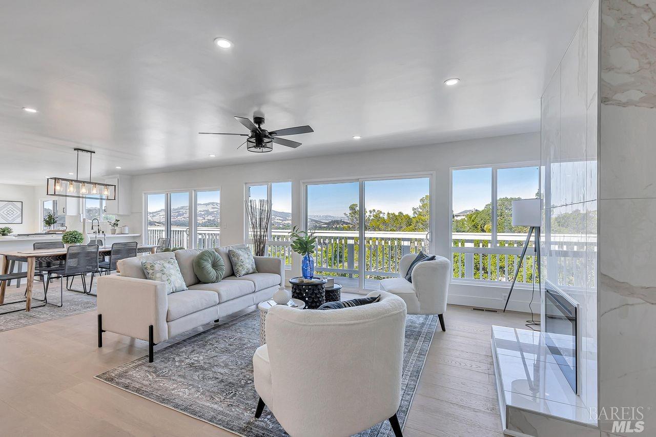 Now Turnkey Inside and Out with a Price Reduction! Sellers just installed beautiful landscaping surrounding this newly renovated 4 BR, 3 BA home at the end of a tranquil cul-de-sac in the coveted President's neighborhood. Nestled on over a 1/2 acre, this spacious +/-2917 sf pristine home enjoys a thoughtfully designed open floor plan offering wonderful indoor outdoor flow, abundant light and exquisite views of Mt. Burdell and surrounding hills. The large living/dining room area has a dramatic quartz fireplace, a wall of windows and sliding doors that open to an expansive deck area overlooking the valley making the home perfect for outdoor relaxation, al fresco dining and entertaining. The beautifully updated chef's kitchen boasts quartz countertops, custom cabinetry, new stainless steel appliances, a walk-in pantry and access to the outdoor deck area. The primary suite, featuring a sumptuous bathroom, large walk-in closet and gorgeous views, plus two additional bedrooms and hall bath are on the main floor. A laundry room and attached 2 car garage complete the main floor. Downstairs opens to a large family/game room and deck. A fourth bedroom, bath and separate office/exercise room sit just off the family room. Lovely patio too! Just unpack your bags and