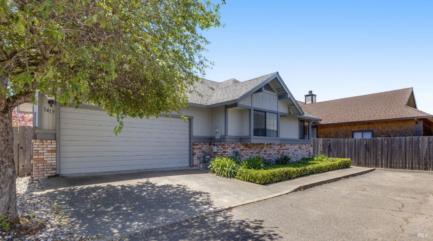 Fall in love with this 3 bedroom, 2 bath, +/-1,180 sq. ft. home located in the desirable McDowell Meadows community. The inviting foyer expands into an open floor plan all with single story living. The gourmet chef's kitchen is a culinary enthusiast's dream, boasting stainless appliances, granite countertops, custom lighting, and updated cabinetry. Brimming with all the luxuries of cozy living, enjoy evenings round the wood fireplace sipping your favorite beverage. As you venture into the backyard, you'll be captivated by the low maintenance decor, and the spacious patio perfect for summer gatherings. This private location offers a canopy of street front trees and private driveway off main roads. A bonus is the attached two car garage perfect for all your outdoor adventures supplies. Only minutes from downtown Petaluma, 1417 Morning Glory Drive is conveniently situated near all your sought-after Wine Country amenities: golfing, hiking, biking, trails, state parks, shopping, and exquisite dining. Create a new legacy and make this your dream home today!