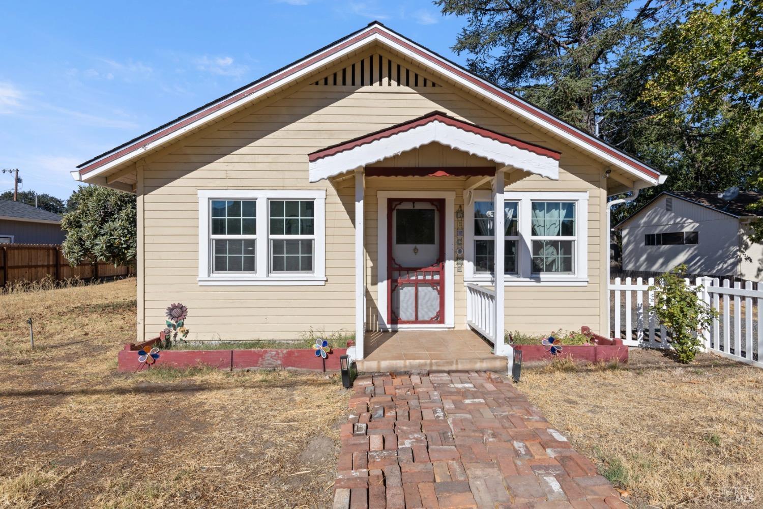 Adorable, Vintage 1939 Kelseyville home comes complete with a white picket fence! This updated 2Bed/1 Bath Main house has newer appliances, roof, windows and wood stove. Mini split offers Heat & AC. Convenience and great use of space has built-in storage and a laundry closet in the kitchen. The detached garage offers an attached guest room and bathroom- this would make a great office, exercise room, artist studio etc! The large yard has a patio area, covered wisteria sitting area and fruit trees! Close to Schools, Shopping, Restaurants, Wineries and Main Street for all of Kelseyville's Community Events!