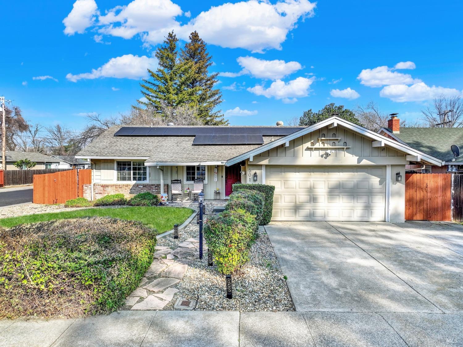 Welcome to this delightful single-story residence nestled on the desirable north side of Vacaville. This lovely home offers a perfect blend of comfort and modern updates. Featuring RV parking and owned solar panels, this home is as practical as it is charming. Step inside to discover beautiful hardwood floors that flow throughout the living areas. The beautifully updated kitchen is complete with a gas stove, stylish subway tile backsplash, and ample counter space, and open to the living space making it perfect for entertaining or family gatherings. Both bathrooms have been tastefully updated, showcasing elegant tile showers that add a touch of luxury to your daily routine. The spacious primary bedroom features double closets, providing plenty of storage! Enjoy the ambiance of mood lighting throughout the home, creating the perfect atmosphere for any occasion. The expansive backyard is a true highlight, featuring a shed, covered patio and ample space for gardening or entertaining friends and family in a serene outdoor setting. Don't miss out on the opportunity to make this charming home yours!