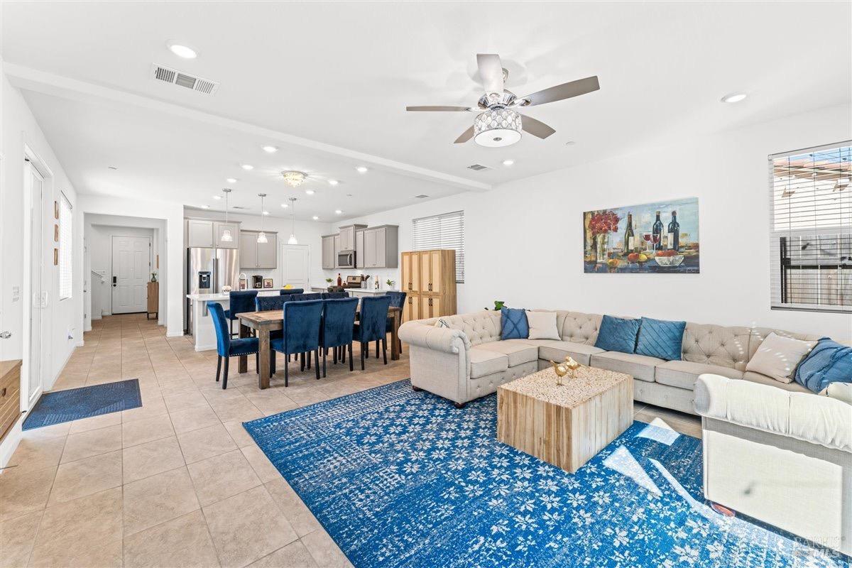 Price Reduced & Available with a 3 year Home Warranty! This recently built Gold Ridge gem offers a perfect blend of contemporary style and functionality, with the added benefit of No HOA. Conveniently located next to Travis Air Force Base and Vacaville. Natural light fills the spacious, open-concept layout. The first floor includes a large bedroom and bathroom, ideal for guests or easy accessibility. The heart of the home is the open kitchen, dining, and living areas, designed for both entertaining and everyday living. Upstairs, you'll find a versatile loft, two generously sized bedrooms, a full bathroom, and a spacious laundry room, adding convenience for your family's needs. The master suite offers a luxurious retreat, featuring a large walk-in closet and a beautifully appointed en suite bathroom. Located in the highly desirable Travis School District, this home is perfectly positioned for family living. It comes equipped with a full kitchen appliance package, so you'll have everything you need from day one. The long courtyard-style driveway provides easy access to the living space, perfect for kids to play or parking several vehicles. To top it off, this home features a top-of-the-line solar system paired with a Tesla Powerwall battery & Whole Home Fire sprinkler system.