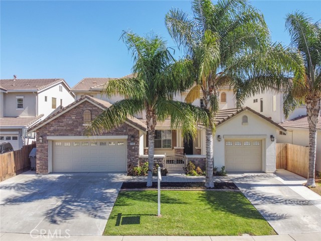 Welcome to this exceptional home located in one of the most desirable neighborhoods in North Merced. Featuring 4 bedrooms, 3 bathrooms, 2,557 sqft, 3 car garage with insulated doors and extended driveway, tile roof, custom cabinets in kitchen and bathrooms, 36” cooktop, quartz countertops, an extended breakfast bar for extra seating, spacious meal prep island, plenty of counter space, dark stainless steel appliances, dual temperature wine fridge, convenient open concept kitchen & family room with upgraded fireplace and a delightful entertainment center, formal living & dining room, oversized windows, and vaulted ceilings which provide plenty of natural light, a spacious master bedroom, master bathroom offering both shower, tub & dual sinks, spacious walking closet, upgraded lighting fixtures, ceiling fans, recess lighting throughout the home, dual zone A/C, big backyard with stamped concrete, covered patio, outdoor ceiling fans, spacious gazebo, mature landscaping, fruit trees, just minutes away from UC Merced, parks, walk & bike trails and shopping.