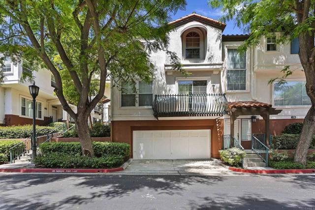 Welcome to Tustin Del Verde, a Mediterranean-style community in the desirable and secure Tustin Ranch. This bright, corner-unit 3-story townhouse is just a short walk to the Tustin Marketplace offering top dining, shopping, and entertainment. Home ownership pride is reflected in this meticulous, ready-to-move in townhouse. The main living area on the second floor features a sunlit living room with fireplace, vaulted ceilings, and large windows showcases peaceful views of mature trees. Remote-controlled ceiling fan enhances comfort and breezy corner location. The living area includes new flooring, new baseboards, and fresh paint. Adjacent is a bright, sunny kitchen features white cabinetry, nickel-finish hardware, stainless steel appliances, and extra-tall pantry for ample storage. A breakfast nook and spacious layout make it perfect for casual meals and entertaining. Just outside, the large balcony overlooks tree-lined streets—ideal for grilling or relaxing. A convenient guest powder room is located a few steps down. Upstairs, you’ll find two large suites, each with private full bathrooms. The primary master suite feels tucked into the treetops and features a walk-in closet, dual vanities, soaking tub, and separate shower. The second suite has a double-door entry, vaulted ceiling