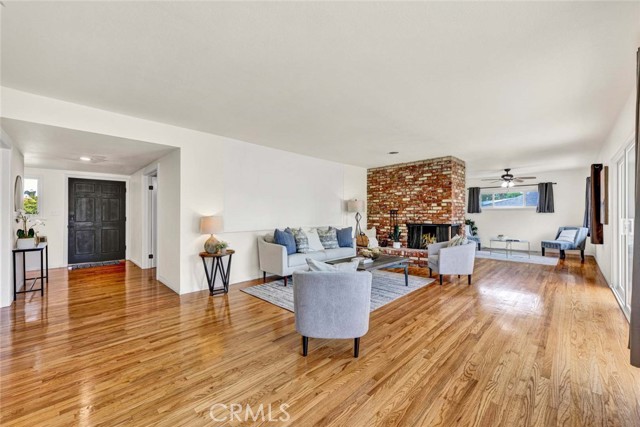 Welcome to this charming 3 bedroom (+Office/den), 2.5-bathroom home offering 2,540 square feet of comfortable living space in the heart of North Tustin. With hardwood floors throughout, recently refinished for a fresh look, and an abundance of natural light, this home features an open floorplan that’s both spacious and inviting. Step into the large living room with a cozy fireplace, oversized windows, and a sliding glass door that opens to the expansive backyard and patio—ideal for outdoor dining, entertaining, or simply relaxing in the sunshine. A second sitting area leads into the kitchen, which flows seamlessly into the dining room, perfect for everyday living and gathering with friends. Recent upgrades include a new roof, updated bathrooms, refinished hardwood floors, and smart features such as app-enabled garage doors and smart thermostat control. The home includes three generously sized bedrooms, a bonus room or office (that could be a 4th bedroom), two full bathrooms, and a convenient half bath for guests. The large backyard is ready for you. Want a pool or an ADU?! There is plenty of space! Located in a welcoming neighborhood with a true sense of community, and just minutes from great schools, dining, shopping, entertainment, and golf courses. Don't miss your chance to ma