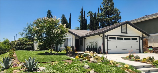 Welcome to this beautifully remodeled 3-bedroom, 2-bathroom POOL home nestled on an oversized corner lot in the highly sought-after Robinson Ranch community. Boasting approx. 1,836 square feet of thoughtfully designed living space, this single-level home sits on a quiet cul-de-sac and features a bright and natural aesthetic with high-end finishes throughout. Step inside to discover a bright, open-concept layout with vaulted ceilings, fresh interior paint, and wide plank laminate wood flooring. The formal living and dining area is anchored by a cozy wood-burning fireplace and flows seamlessly into a spacious family room, complete with French doors that open to the backyard oasis. The fully remodeled kitchen is a showstopper, featuring crisp white cabinetry, GE Profile appliances, a waterfall-edge island with bar seating, and a charming eat-in nook - perfect for everyday living and entertaining. Retreat to the luxurious primary suite with a beautiful bay window, cathedral ceilings, dual mirrored closets, and a renovated en-suite bathroom with a double vanity and walk-in shower. Outside, the expansive backyard is ideal for relaxing and entertaining, offering a lap pool with a spillover spa, covered patio, low-maintenance landscaping with lighting, multiple fruit trees, and raised ga