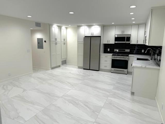 Coastal Luxury Awaits! Indulge in California living in this stunning, remodeled 2-bedroom, 2-bathroom condo, nestled just 2 blocks from the pristine shores of Carlsbad. This exquisite downstairs back unit has an open-concept floor plan, perfect for entertaining guests or relaxing at home. The modern kitchen features sleek countertops, top-of-the-line appliances, and ample cabinet space. The spacious bedrooms offer serene retreats. Large windows flood the home with natural light, creating a bright, airy atmosphere. Enjoy the smell of the coastal breeze ideal for morning coffee or sunsets. This prime location offers easy access to world-class beaches, dining, shopping, and recreational activities. Everything is new in this remodeled back unit including Stainless Steel Refrigerator; washer; dryer and furnace. Tenants will be responsible for their waste disposal; gas & electric. SHARED 1 CAR GARAGE.