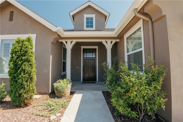 Welcome to this stunning 4 bedroom, 2.5 bathroom home with a large office nestled on a big corner. Located just steps from hiking and biking trails that will lead you to Upper Bidwell Park and the nearby nature preserve. Step through the custom front door, where you will be greeted by tall ceilings, beautiful tile flooring throughout, windows with hidden tilt shutters, and an inviting open floor plan. Just as you enter you will pass by the large office with custom French doors. The spacious living room includes a large TV with a custom sound system, a custom gas fireplace, and a view to the backyard. Take entertaining to the next level in this fully equipped kitchen. It features quartz countertops, updated shaker cabinets, an oversized farmhouse sink, a gas range, and double ovens with a beautiful breakfast bar. The large primary suite offers access to the backyard and features a beautiful soaking tub, a walk-in shower, and an oversized walk-in closet. This home also includes a large 3-car garage, owned solar, drought-tolerant landscaping, a security system, a tankless water heater, a whole house fan, and hookups for a gas grill with a beautiful covered patio for hosting. Don’t let your dream home pass you by.