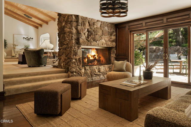 Set on a full acre in the desirable Westlake Trails neighborhood, this private retreat feels tucked away yet is just minutes from the 101 and an enjoyable bike ride to the lake. Here, life moves a little slower. Horses pass along the trail, rabbits hop across the lawn, and majestic oak trees frame the landscape. In front, a seasonal creek winds through, adding another layer of natural beauty.The long driveway welcomes you across a charming wooden bridge and stone approach. An expansive front lawn creates an esteemed sense of arrival, while the backyard opens to a pool, spa, and gardens blooming throughout the year. Inside, the 4 bedroom, 4 bath residence blends soulful character with thoughtful updates. Rich wood tones and dramatic stone fireplaces anchor the living spaces with warmth and authenticity. Natural light pours into the living and dining rooms, while the expansive kitchen features all new Wolf and Sub-Zero appliances. Kitchen and dining areas flow into the home's entertaining spaces, including a built-in bar and wine closet.Tucked away downstairs, you'll find a versatile space well suited as a bedroom or home office, along with a bath and laundry room.Upstairs, the luxurious primary suite offers its own fireplace, bath with soaking tub, two walk-in closets, and a priv