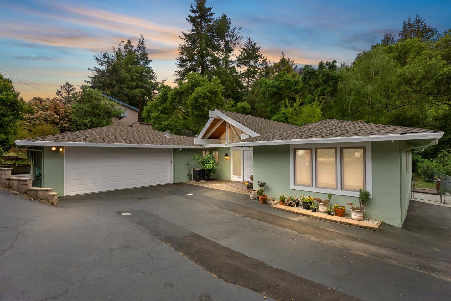 Spectacular single-level home in the highly coveted Hihn Road neighborhood of Ben Lomond. Set on a fully usable 14,418 square foot sun-drenched lot, the spacious home has 3 bedrooms and 2 bathrooms with 1,837 square feet of living space. There is also an oversized 2 car garage with extra space for storage or hobbies. Immaculately maintained, with many recent updates including a fully remodeled kitchen featuring pecan cabinetry and high-end appliances. Both bathrooms have also been luxuriously updated. A fully owned SOLAR system including a large BATTERY power wall make this home ready for the energy future. The ideal floor plan includes a sunken living room accentuated with soaring high open beam ceilings, and an easy flow between indoor and outdoor spaces. The backyard is like an oasis with private decks, multiple garden areas, mature landscaping, and a completely updated finished outbuilding that would make an ideal OFFICE, ART STUDIO, or HOME GYM. Great Schools! Don't miss it!