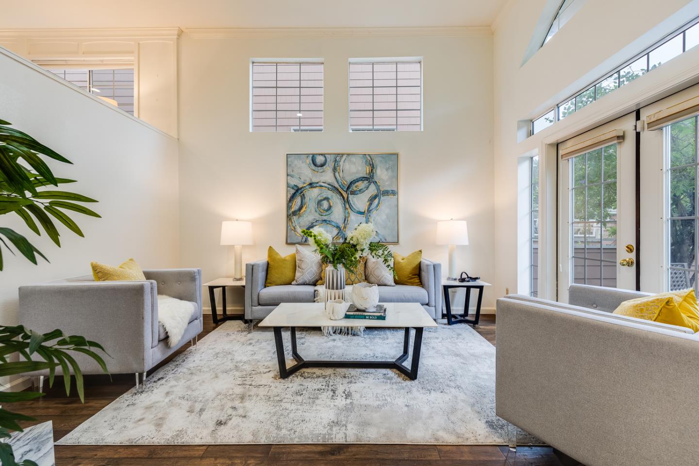 Modern END UNIT nestled within premiere Rosewalk community. The best of PA Schools: Fairmeadow ES, JLS MS, Gunn HS. Private and serene behind inside this gorgeous neighborhood. Spacious floorplan features 3 Bedrooms, 2.5 Baths w/ an open floorplan. The impressive living room w/ soaring vaulted ceilings w/ french doors opening to a large, private yard. Remodeled modern farmhouse inspired kitchen features white cabinets, quartz Carrara countertops, SS appliances, gas stove w/ large hood & a breakfast bar. VIEWS from the LUXURIOUS PRIMARY RETREAT which boasts tons of closet storage & a spa-like en suite bath. Relax & unwind in this primary bath w/ double sink vanity, a soaking tub & walk-in shower. Gleaming wood-like floors, recessed lighting throughout, EV 220 outlet in garage, dual pane windows, newer water heater. Attached 2 Car Garage, Interior Laundry Room. Enjoy community pool & hot tub. Couple blocks to Challenger. Near Google, Meta, Apple, downtown PA, Village San Antonio Center!
