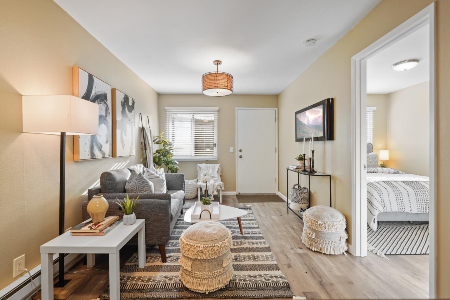 Recently remodeled and move-in ready condo with a rarely available "junior 1 bedroom" floor plan. Unlike other studios, this unique unit has a separate sleeping space! Updated kitchen with quartz countertops and stainless appliances. Open floor plan. Beautifully renovated bathroom and walk-in closet. Wood-look flooring throughout. This hyper convenient location is just blocks from YouTube, Kaiser, and Bayhill Shopping Center, and close to 101 & 280, Bart, playgrounds, and Tanforan mall. The LOW HOA fee of $325 includes amenities such as three pools, tennis courts, and clubhouse, and covers trash, water, and grounds maintenance. One assigned parking space in the garage is just below the unit, and the laundry facility is nearby. This is your perfect "pied-a-terre" on the SF Peninsula, don't miss it!