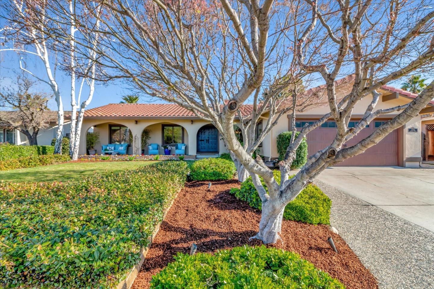 Gorgeous single-story home on a beautiful tree-lined street in highly desirable Almaden Valley! This stunning home has an abundance of natural light; 4 bedrooms; 2.5 bathrooms; 1,870 sq. ft. of living space; spacious kitchen with large island, quartz countertops, stainless steel appliances, bar area with wine fridge, warming drawer; expansive family room with river rock gas fireplace and built-in tv; primary suite retreat opens to private and serene backyard featuring an in-ground pool, orange tree, lemon and lime plants, rosebushes, and herb garden, making it the perfect spot for relaxing and entertaining guests; separate formal dining room; beautifully updated bathrooms; in-home laundry room; skylight; recessed lighting; central AC and forced air heat; double pane windows; whole house fan; 2 car attached garage and more! Walking distance to Guadalupe Oak Grove Park; hiking trails; close to major commuter routes, shopping and dining. Award-winning schools!