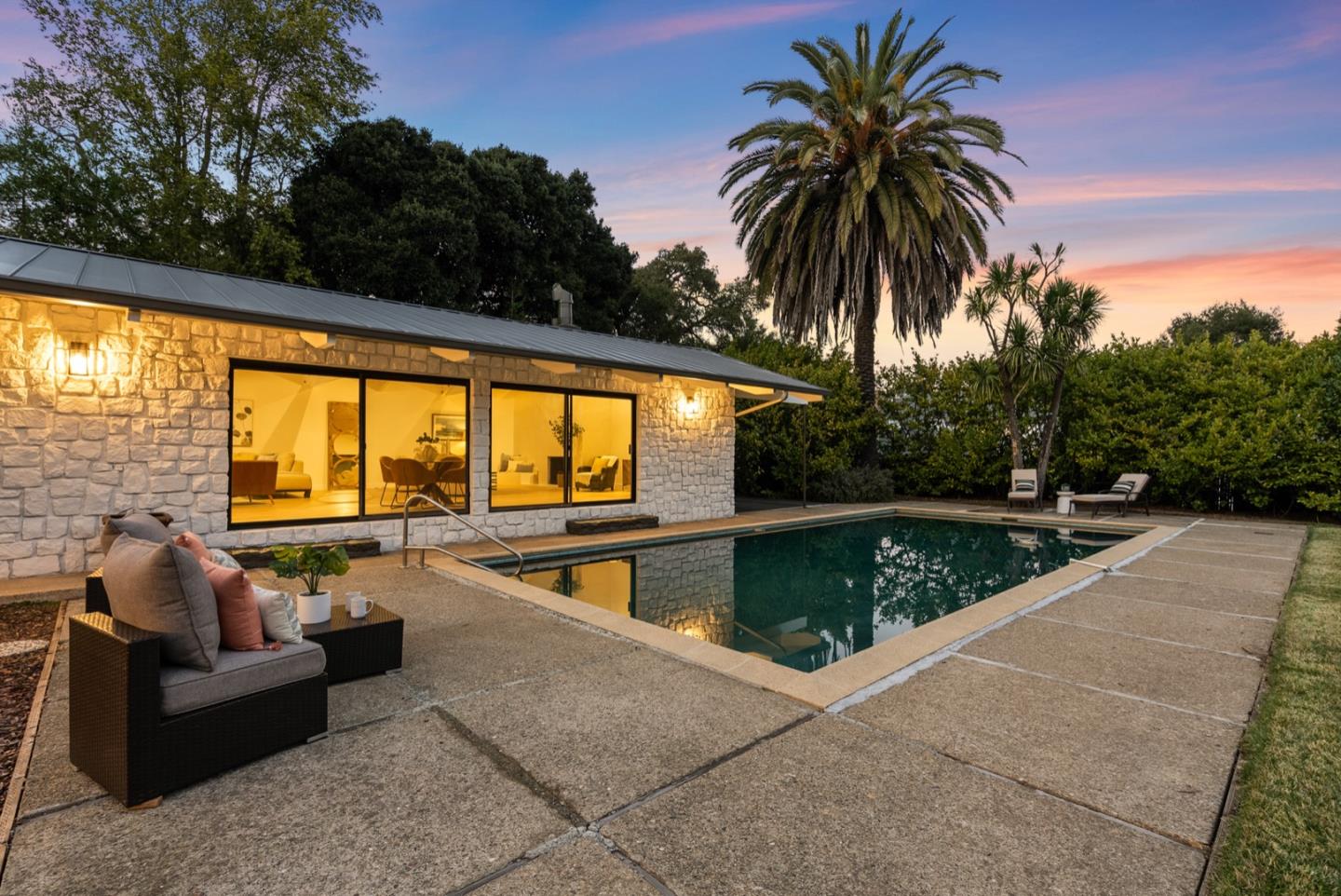 Hidden in a forest hollow on an acre sits this stunning mid-century modern estate. Private compound fenced and gated with a Cal native garden awaiting behind the gates. Circular driveway makes entertaining a breeze and a nice setback from the road with spacious parking option if youre entertaining. The property had an extensive remodel done with permits. New baths and a new farm-style kitchen with soaring ceilings opens up to the yard and pool. New metal roof. New white oak engineered hardwood throughout as well. Huge family room could be reconfigured to add an extra bedroom. Three car garage and pool room or JR ADU fully equipped with bath and separate entrance. Surrounded by other exquisite 14+MM homes nearby, and the flat acre is perfect for enjoyment as-is or expand or rebuild the home of your dreams. Situated in the City of Woodside on the border of Portola Valley. Access to Sandhill road and town of Woodside as well as downtown Portola Valley. Horse country and bikers dream.