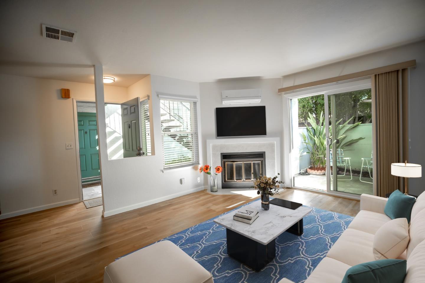 GREAT LOCATION in desirable area of San Jose. Ground-level end unit located at the back of the complex and very quiet! Conveniently close to State Route 85/87, Costco, Trader Joe's, Whole Foods, Almaden Ranch, Westfield Oakridge Mall plus more. Kitchen has granite slab counters/backsplash & all appliances included, spacious living room with fireplace, inside laundry includes full-size washer & dryer, dining area has new light fixture, fenced patio with storage closet and shed. NEW Gaia SPC flooring throughout, 1-year NEW water heater, dual pane windows, a mini split ac unit in the living room & bedroom, freshly painted interior plus more. HOA includes community pool / hot tub, common area maintenance, roof, basic cable plus, some termite, reserves, community management and more. (Some photos are virtually staged)