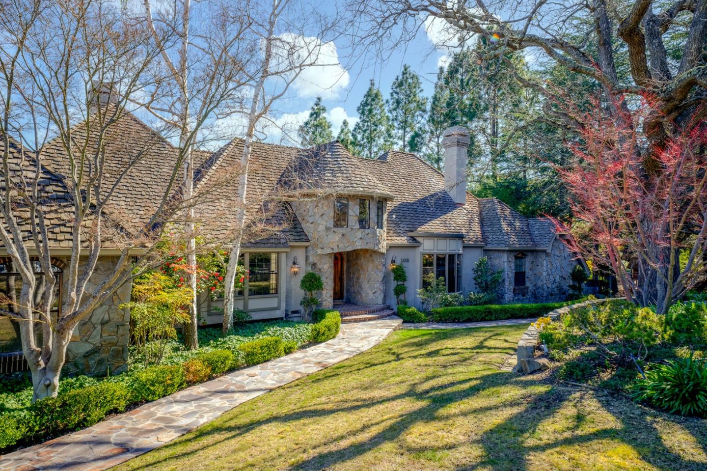 Desirable Silicon Valley retreat with storybook curb appeal. 4 bedrooms + 1 library (optional 5th bedroom), 4 full bathrooms, 2 half bathrooms. Nearly 1 acre lot, private and gated. Lush lawn, magnificent trees and pathways. Beautifully-designed floorplan with hardwood floors, vaulted ceilings, 3 fireplaces, high windows and spacious rooms. Comfortable, octagonal breakfast room off the kitchen overlooks a serene backyard. Butler's pantry. Well-appointed and roomy primary suite with walk-in closets, large shower enclosure and soaking tub. Laundry room. Game room with kitchenette, spa-like sauna and secondary suite ideal for entertaining and multi-generational living. Mud room. 3-car garage with plenty of storage for car enthusiasts, hobbyists and athletic gear. Low-traffic cul-de-sac. Fantastic, high-value neighborhood that backs to an open space preserve with popular hiking trails.
