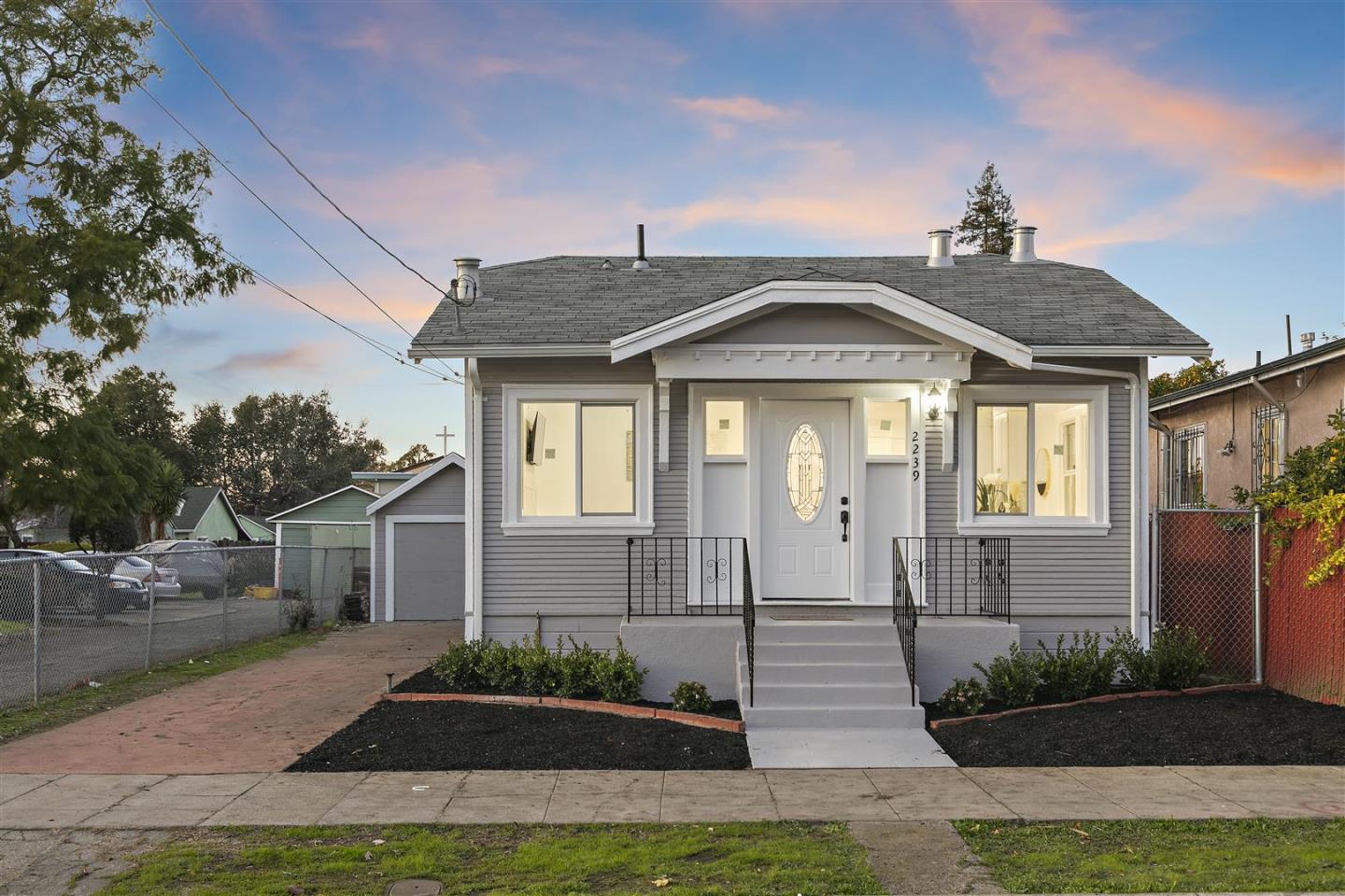 Welcome to 2239 83rd Ave in Oakland! This modern contemporary updated 2 bed, 1 bath home will impress your guests. Walk into a gorgeous new open floor plan. The living room focal point is the custom-made entertainment wall with a TV mount + electric fireplace to enjoy. The bright open kitchen features quartz countertops, custom-designed glass backsplash, white cabinetry + gorgeous molding. Enjoy the bright bedrooms with new flooring, paint + plenty of storage. The bathroom is well-designed with beautiful floor tile work + large shower tiles. Have peace of mind knowing it has new interior + exterior paint, new flooring throughout, new windows throughout, a new tankless water heater, + upgraded electrical and plumbing. Endless possibilities with a huge yard to fully landscape, entertain, relax, or look into expanding or building an ADU. The long driveway can be used for off-street parking + a detached garage for additional storage. Short drive to the Oakland Zoo. Easy access to HWY 580.