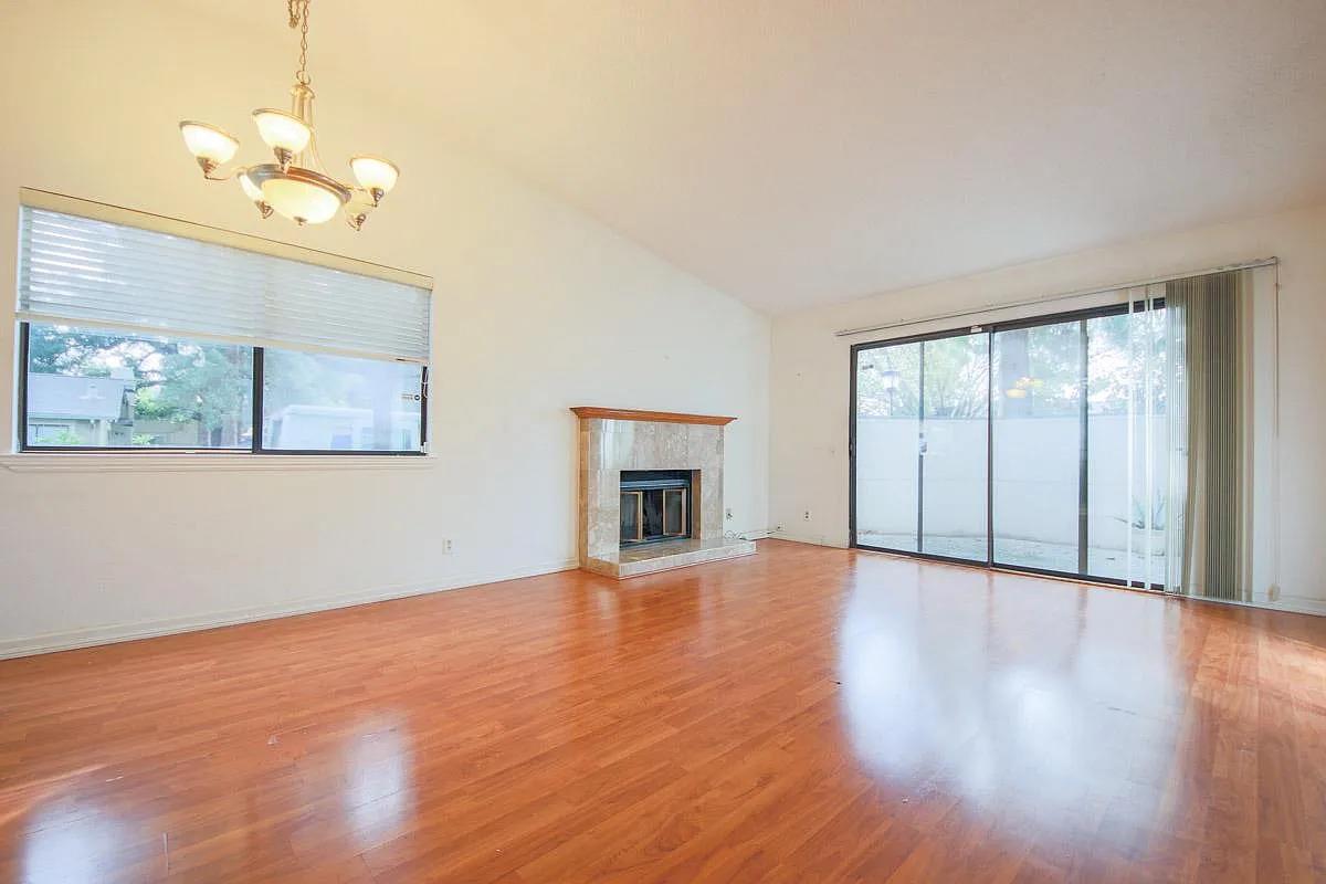Lovely one level end unit filled with lots of natural light in a tranquil setting. Perfect starter home or a great retirement retreat. Huge living room with vaulted ceilings open into a private patio. Large kitchen with ample counter space. Huge Master bedroom that overlooks the back patio. Indoor laundry. Attached 2 car finished garage. Very quiet complex with lots of green areas and swimming pool. Walking distance to park, library, Hayes mansion. Great location with easy access to shopping and freeways