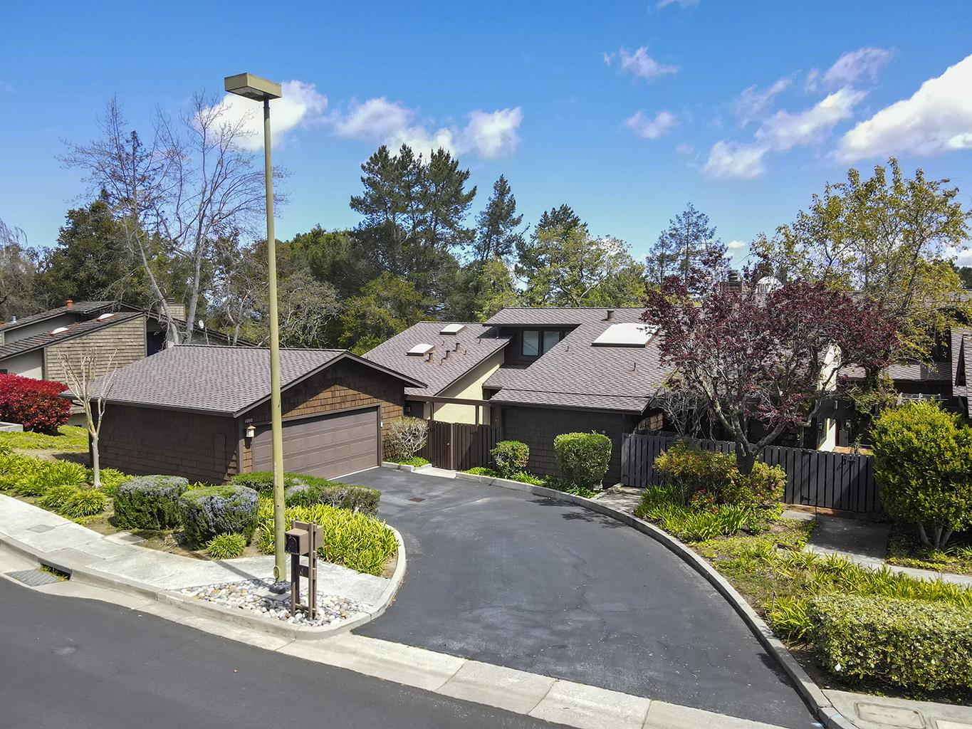 Sharon Heights two-story townhome with end-unit location and a bright, expansive floor plan that feels more like a single-family home. Gated front courtyard offers a wonderful private space for outdoor living plus every room opens to a rear deck with serene wooded views. Towering cathedral ceiling and hardwood floors unify the open and flowing main living areas with space designed for formal living and ample room for an office, if needed. The all-white kitchen is sleek and modern and has space for casual dining plus dual entry points to the front courtyard. 3 spacious bedrooms plus family room or office include a main-level primary suite. Wet bars on main and lower levels, large laundry room, and 2-car garage. Community pool, spa, and clubhouse. Excellent Las Lomitas schools.
