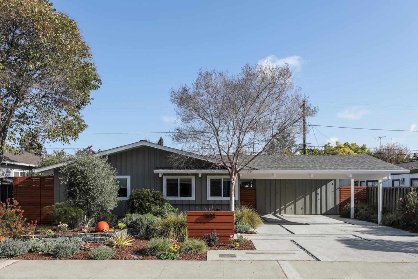 Los Altos Schools. The best of Silicon Valley living.Through the private gate your oasis awaits to enjoy an indoor/outdoor lifestyle. This stunning contemporary home features a wrap-around yard, high ceilings, tons of windows, hardwood floors, and a sun drenched open concept floor plan. Your family will enjoy spending sunny days playing outside and swinging on the loved tree swing while eating fresh oranges and apples off the tree. The carport has two huge finished sheds with more storage space. The large driveway that can easily fit 4 cars is a perfect place to draw with chalk, ride a tricycle, or enjoy a nice chat with the neighbors. The adored St. Francis Acres neighborhood is a community where kids play basketball in the street and neighbors chat in their front yards. Take a short walk down to Schaefer Park/McKelvey Fields with a modern playground, baseball fields and a dog park most mornings. Must see!