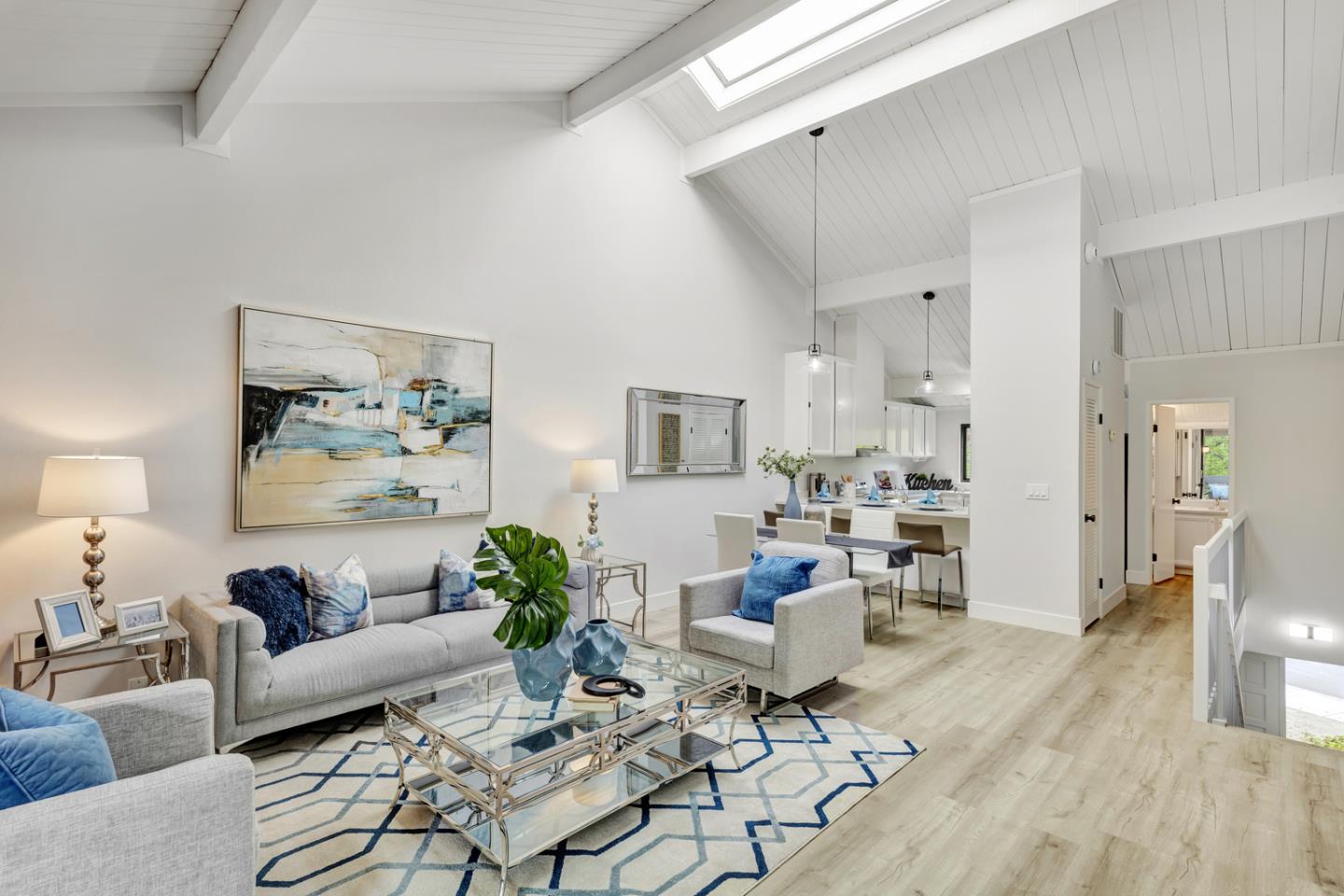 This townhome boasts a stunning contemporary style and is situated within a beautiful resort-like community with immaculate, landscaped grounds and towering redwood trees. The community offers a large swimming pool, spa, clubhouse, and even a tennis court for its residents. Inside, the home features 2 spacious bedrooms conveniently located on the ground level, providing easy access to the large patio nestled among the beautiful and relaxing nature. The bright and open family room boasts an elegant, vaulted ceiling with a skylight that floods the space with natural light. The kitchen opens to the dining area with an eat-in kitchen feature. Another patio is located off the family room, offering a beautiful view of the surrounding nature. Centrally located in the highly desirable town of Mountain View, this home is in close proximity to Downtown Mountain View, where a variety of delicious restaurants, fun shops, and coffee shops. It's also just a short commute to top tech companies
