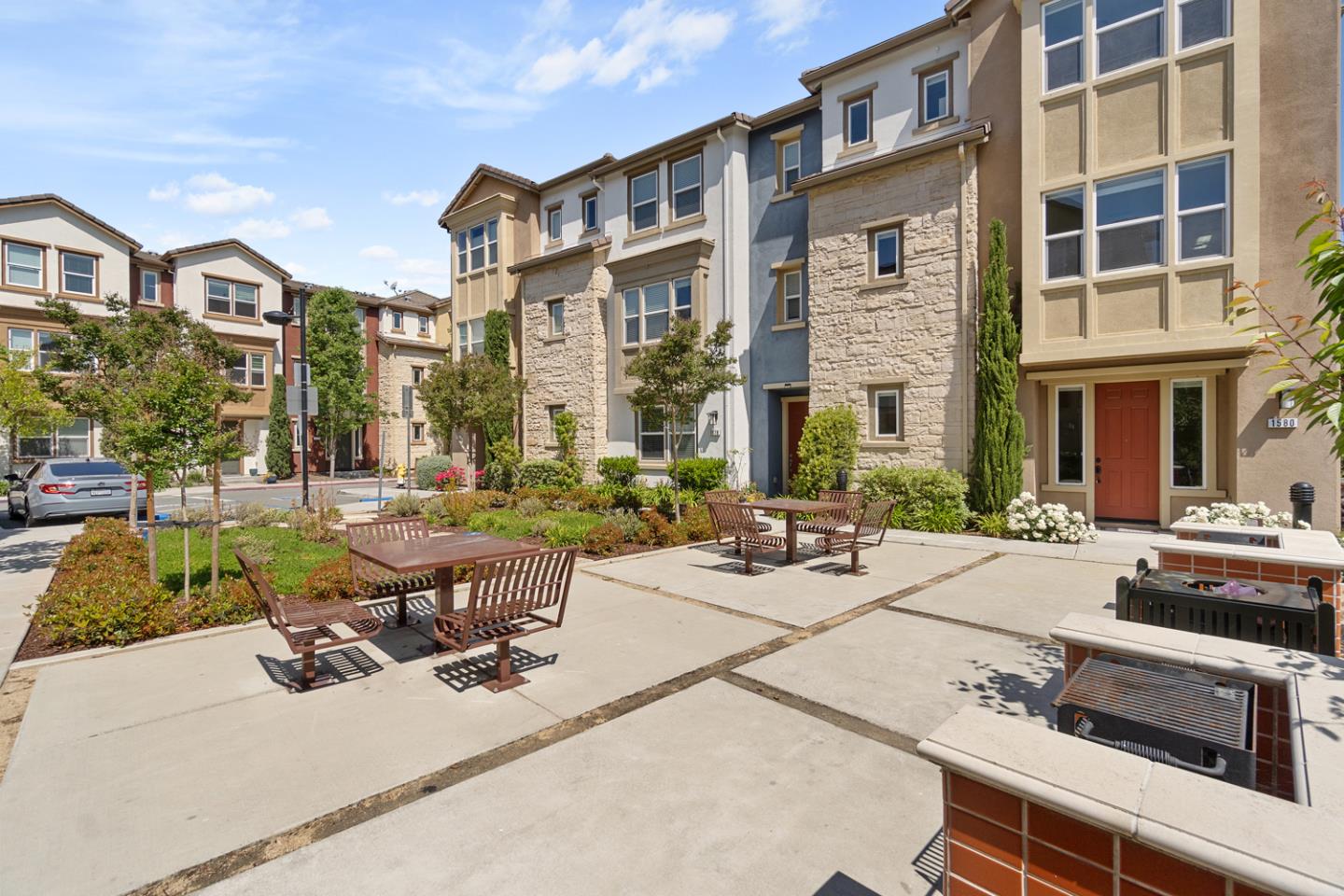 Private and beautiful end-unit townhouse in a desirable neighborhood! This beautiful home offers an open floor plan with lots of windows and great natural light along with recessed lights and centralized air conditioner. Excellent floor plan with ample space for comfortable living and entertaining. Upgraded kitchen cabinets and stainless steel appliances. Upstairs laundry. Master bedroom oasis has a large walk-in closet. Hardwood floors in the living area and kitchen. An attached 2-car garage with BBQ Grill just in front of the door. Low HOA fee. Attending Rancho Milpitas Junior High and Milpitas High, Walk to Mabel Mattos Elementary. Close to parks. Convenient location with the urban living experience. Within walking distance to Trader Joe's, Orange theory Fitness, and Great Mall featuring an array of shopping, dining, and entertainment options. Walking distance to Milpitas BART. and VTA. Easy access to 680/880/237, and easy commute to many high tech employers.