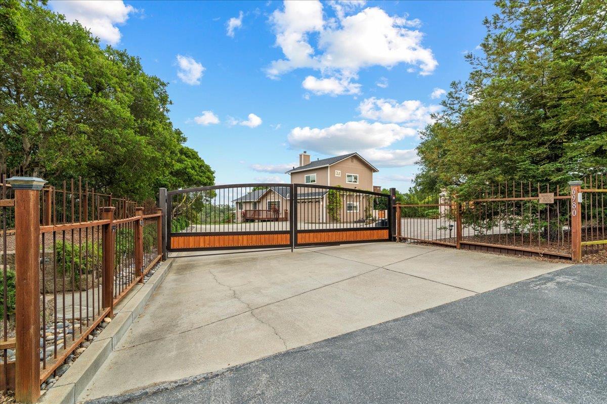 Enjoy sunrises & sunsets from this stunning private Central Coast hilltop property overlooking Monterey Bay and the surrounding mountains! Enter through the gates & you're greeted with vineyard style doors, the sound of a natural stone waterfall, and beautifully designed landscaping. This 2-acre property is perfect for entertaining with its expansive lawn area, Bocce court, 5 decks, gazebos & ambient lighting. This home features a thoughtfully designed open floor plan with 4 bedrooms, 3 full bathrooms & attached 2 car garage. There are 2 primary bedroom suites. Amenities of this home include an impressive kitchen, recessed lighting, laminate flooring, vaulted ceilings, a wood burning fireplace & picturesque views of the landscape from every window. The indoor & outdoor spaces flow seamlessly, offering multiple areas for relaxation & enjoyment. Other features include solar power, abundant parking, security system, raised garden beds, fully enclosed dog run & room for horses.
