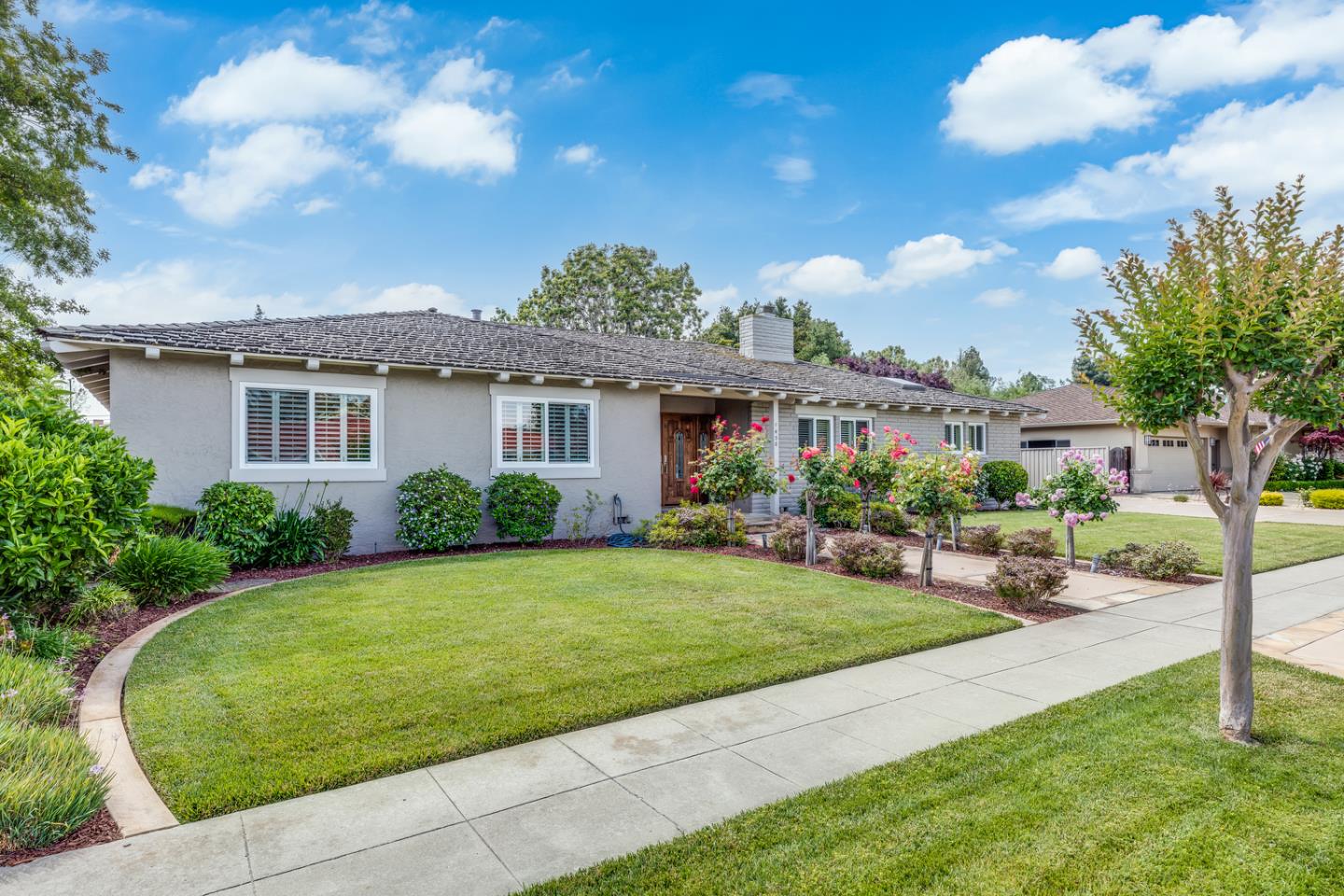 Well maintained single level home in one of the most sought after neighborhoods in Willow Glen. This spacious Dry Creek area home is approximately 2,936/sf, situated on a large 10,652/sf lot and offers 4 bedrooms, 2.5 bathrooms, large primary bedroom with en-suite bath and access to the backyard by way of a sliding glass door, grand family room with hardwood flooring and a real wood burning fireplace with gas log insert, formal living room with wood beam vaulted ceiling and wood burning fireplace and a sizable kitchen adjacent to substantial dining area. Additional features include dual pane windows, hardwood flooring, window shutters, a newer furnace and AC, two water heaters, extra large laundry room with access to the backyard, attached two car garage with potting shed and a sparkling in-ground pool and spa. A short stroll to Booksin Elementary School, Willow Glen Middle school, Willow Glen High School, Saint Christopher's church and school and Presentation High School.