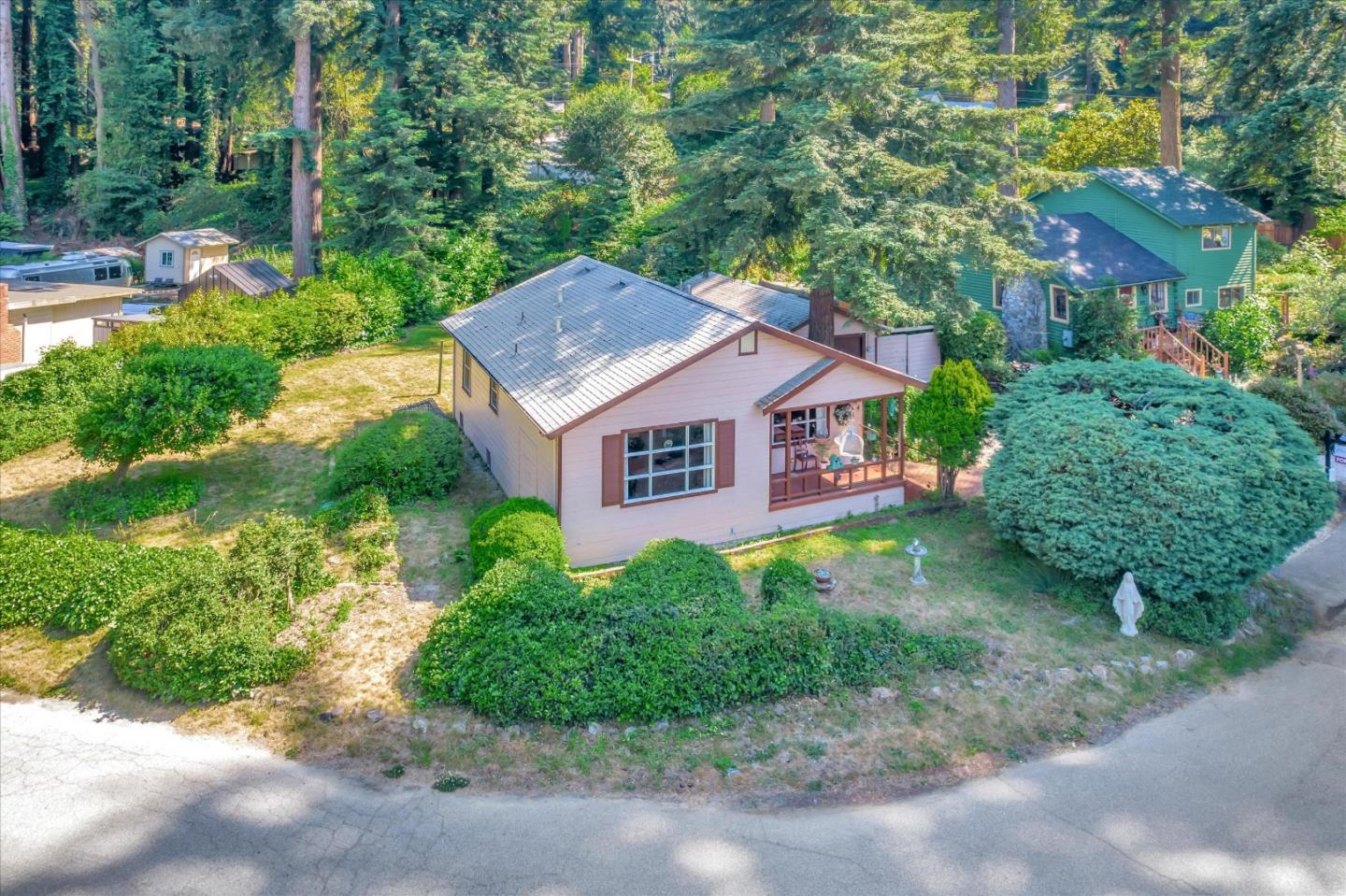 This is a fabulous and rare opportunity to own property here in the coveted Gold Gulch River Park community! Perfect starter home with a 2/1 main and additional detached living space with a bathroom, utility, workshop and storage. Make it your own and incorporate the large attic and or loft space. Mature landscape borders an expansive, level backyard, longing for lazy day lounging and summertime play. Just a few doors down there is a private riverfront beach exclusive to this neighborhood! Minutes to Henry Cowell, Roaring Camp, beaches, shopping and entertainment. 30 minutes to Los Gatos/Saratoga/San Jose.