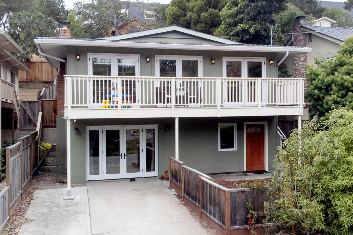 Walking into this updated Carmel home you'll be captivated by the bright, open living-dining room with its bookshelves, skylight and fireplace. Facing east for morning sun, the kitchen and living-dining room open to a spacious deck. There are cozy oak floors throughout, with stone and marble floors in the kitchen and baths. The kitchen has new quartzite counters and a 6 burner gas range. Double closets and French doors that open to the generous backyard with a deck make the primary suite a nice haven. Two additional bedrooms complete the main level. Downstairs is the 583 sq ft. permitted ADU with a spacious living area, full kitchen and pantry. French doors fill this great room with light. A separate bedroom and bath make the unit very livable. Home is very close to town and not far from the beach. Enjoy all of Carmel by the Sea wonders!