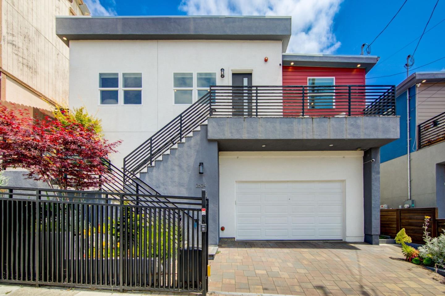 Like new home built in 2020 located in a quiet Oakland neighborhood with a beautiful modern design. Full open floor concept with chef kitchen, quartz countertops, stainless steel appliances, walk in pantry, custom cabinets and a large island. Soaring 12FT ceilings throughout the home with built in speakers. Home is wired with CAT6 ethernet. Smart home features include a full Nest system w/ cameras, control pad and alarm along with a WIFI garage opener and smart switch. 3M window security film installed on all exterior windows. Full gym in the garage. Automatic driveway gate with locked mailbox. Energy efficient central heating and tankless hot water heater. Safety and fire compliant sprinkler system. Large master suite with a walk in closet and custom bath. Low maintenance back yard featuring artificial grass and pavers. Beautiful balcony at the entrance with a view. Easy access to I-580, I-880 and BART. Elementary school only a block away. Must see to appreciate.