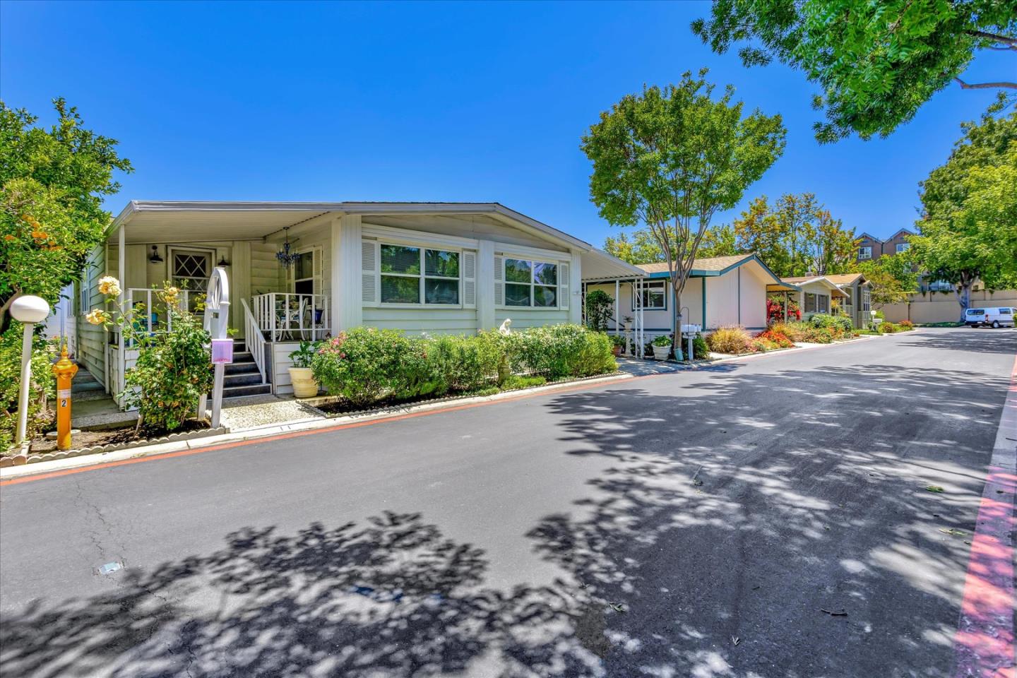 Beautiful 55 + community located in the heart of Sunnyvale. Triple wide, 2 bedroom, 2 bath home with a den. 2,040 sq ft, it has a large living area with wet bar, separate dining area, eat-in kitchen, and a large den that can be used as a home office or craft room. Skylights in the living room and kitchen makes this home bright and airy. Large master suite has a sitting area, three closets, and en-suite bathroom with double vanity, separate shower, and walk-in tub. Additional features include: skylight in hall bathroom; new water heater (6 months old); thermostat replaced (March 2023); living room skylight replaced (Feb 2023), and central heating and air conditioning. Centrally located, within minutes from many charming cities. Near shopping centers and many restaurants. Levi's Stadium, close to public transportation such as VTA and light rails, easy access to Hwy 101 and 237/85. No local property tax. Low space rent to new owner $1,525.