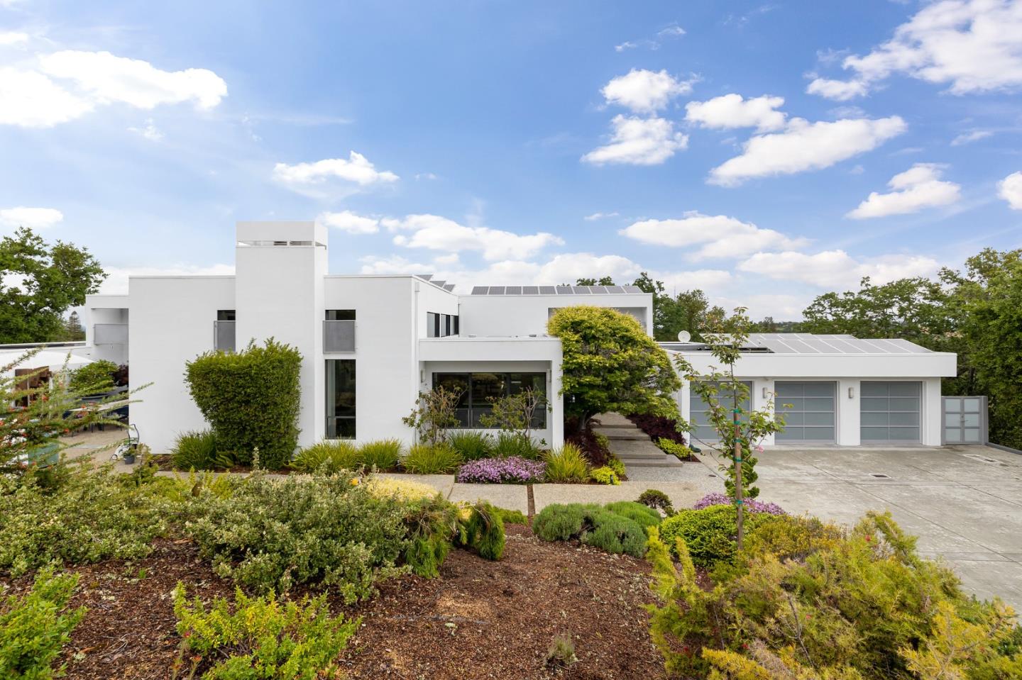 This contemporary estate offers exceptional finishes, sleek sophistication & panoramic views. Featuring 5 bedrooms, 5.5 baths & approximately 4,900 square feet of living space on 1.22 private acres, this residence presents unparalleled luxury throughout. The light & airy home has soaring ceilings & expansive windows that offer organic perspectives & stunning views. The dramatic formal living room is an ideal entertaining space, while the open kitchen-family great room is the perfect destination for social meal preparation. The kitchen is the ultimate chef's domain & features top quality appliances & a large center island. The private bedroom quarters include the primary suite, two additional bedroom suites & an in-law unit with a full kitchen. The knoll-top pool is a peaceful respite for relaxation, while the outdoor terrace is the perfect venue for al fresco dining. Close proximity to Stanford & leading tech campuses including Apple, Google & Meta. Top Palo Alto schools.
