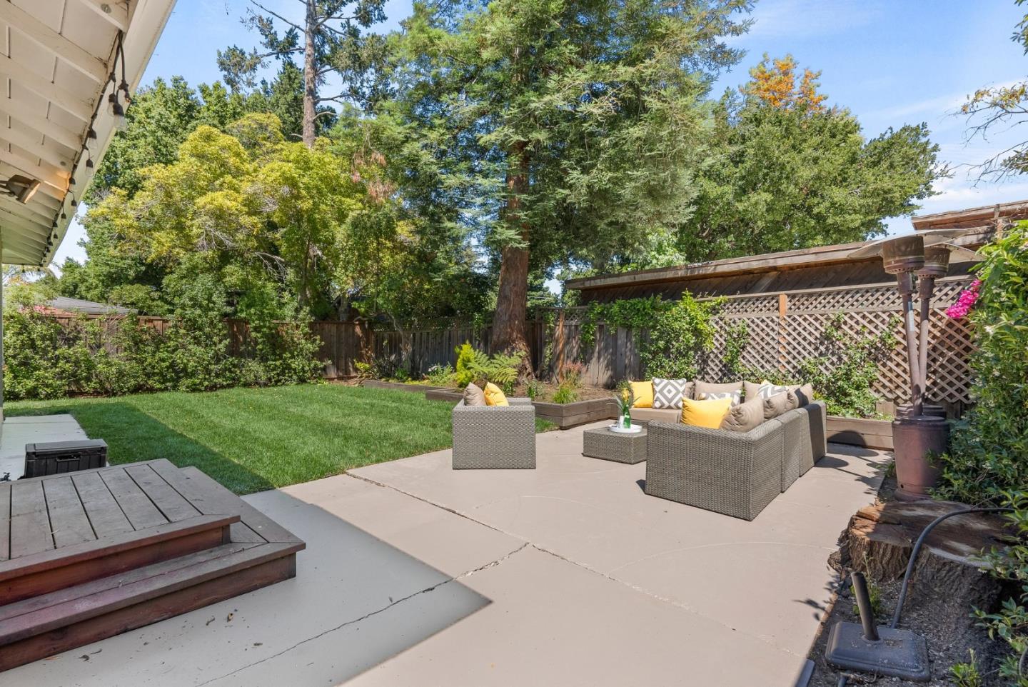 Settle down in the heart of Silicon Valley! An enclosed front yard welcomes you into the home, where upon entry, a large skylight floods the living space with natural light. Rich wood flooring, an elegant fireplace, and recessed lighting bring together an inviting living room, while the adjacent dining area w/modern chandelier offers the perfect setting to enjoy home cooked meals. An additional skylight illuminates the kitchen, which enjoys ample cabinet storage, pantry, garden window, and expansive L-countertop. The home features 3 spacious bedrooms, having private yard access. The backyard is a sunny summertime oasis, boasting a large patio area great for entertaining guests, well-maintained lawn, beautiful mature landscaping, and planter beds for all your home-gardening needs. Laundry is located inside the attached two-car garage which allows for ample storage. This home offers abundant space and privacy, located within minutes of downtown Redwood City, Menlo Park & Palo Alto.