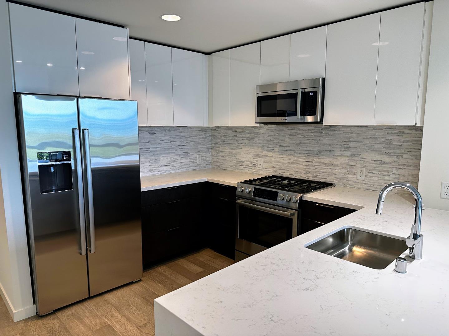 Brand new 2 bedroom, 2 bath modern and stylish condo is in a part of The SF Shipyard's Luxury Collection. It provides a comfortable living space with a total area of 1,067 square feet. One of the main features of this home is that it faces Bay Bridge and the waterfront, and you get to enjoy amazing views throughout the day and night. In addition, large windows offer natural light into the home which includes an expansive kitchen featuring quartz countertops, and modern cabinetry, complete with a full complement of SS Bosch appliances including a refrigerator, washer/dryer range, dishwasher, and microwave. This home also has upgraded engineered hardwood flooring, full Home Automation infrastructure, dimmers, and Honeywell Lyric Thermostat. Another huge benefit is a dedicated parking space assigned to this unit in the secure garage. This unit has smart central heating and air conditioning and the owner pays for water, sewer, gas, and garbage.