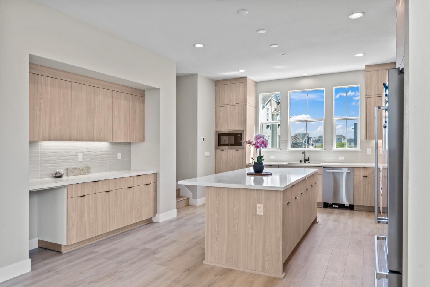 Rare opportunity to live in a stunning brand new home with tons of builder upgrades at a premium location! This exceptional end-unit townhome offers 4 spacious beds, 3.5 baths, 2,038 sq ft living space with soaring ceilings and abundant natural light! Dream floor plan with 1 bed suite and extra-wide side-by-side 2-car garage (2 EV plugs) on the ground floor. Grand living space on the 2nd floor with large balcony and open park view. Beautiful kitchen with large island, quartz countertop, modern title backsplash, Bertazzoni appliances and lavish cabinets. 3 bright beds, 2 full baths and laundry closet with Samsung W/D on the top floor. Gorgeous primary suite has 11' ceiling, dual-sink bath and walk in closet with white deluxe organizers. Stylish laminate floors and premium carpets. Owned Solar with very low electricity cost. Conveniently located minutes from Dumbarton Bridge and 880 freeway. Easy commute to Stanford, Meta, Tesla. Close to Safeway, Sprouts, 99 Ranch, Newpark Mall.