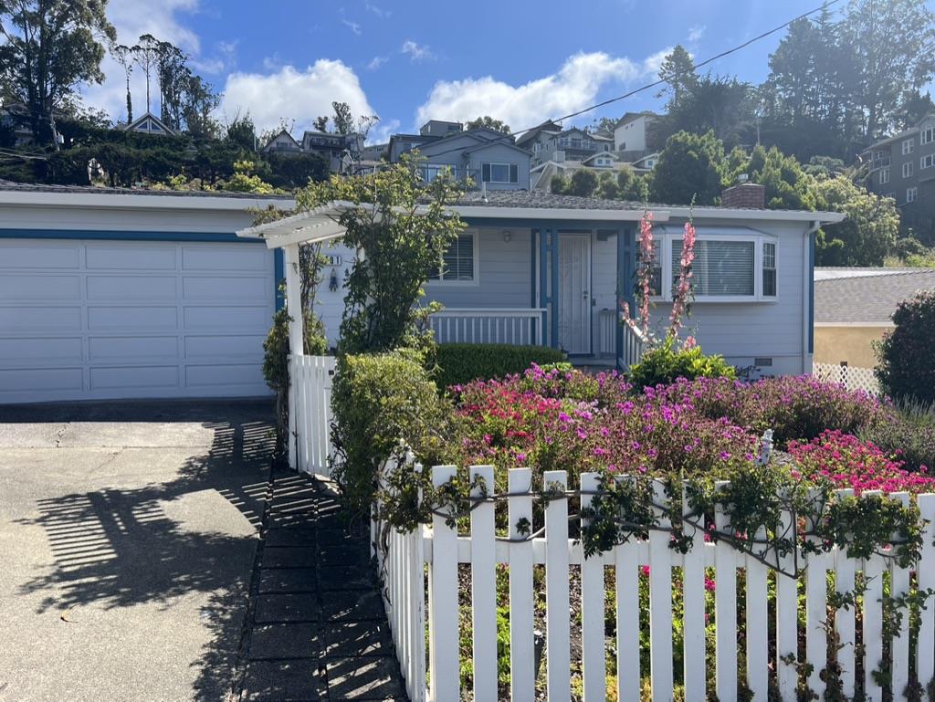 Located in sunny El Granada this adorable one level home sits on a huge lot surrounded by mature landscaping with peeks of the ocean! 2 nice sized bedrooms with 2 full baths plus a large bonus room that could be 3rd bedroom or Office. Living room with Fireplace . Kitchen includes dining/eat- in area and plenty of cabinets. Hardwood floors throughout. 2 car garage with work/craft bench, laundry area with washer dryer included, and a white picket fence surrounds this charming cottage. Large backyard with brick patio for BBQ and outdoor living! Just minutes from Princeton Harbor and Surfers Beach.