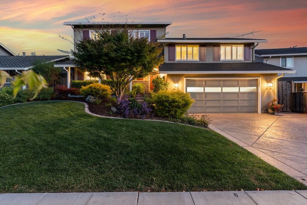With multiple indoor and outdoor gathering areas, this amazing abode is a must see! A generous interior welcomes you with gleaming hardwood-style flooring, expansive windows, and a living room fireplace featuring a floor-to-ceiling brick surround. An open kitchen offers ample cabinetry, stainless steel appliances, pristine white cabinetry, and a dining nook. Sure to be a popular spot, the family room has a wet bar and sliding doors that seamlessly connect you to the upper and lower patios. Relax in your primary suite with its vaulted ceilings, sitting area, private balcony, and an ensuite with dual vanities, skylight, and walk-in shower. Among the four remaining plantation-shuttered bedrooms is a junior suite, perfect for overnight guests. Bonus perks include an attached 2-car garage, custom sprinkler system, and easy access to parks, schools, the San Tomas Aquino/Saratoga Creek Trail, local tech companies, and the 280 and 85 freeways. Come for a tour while this gem is still available!