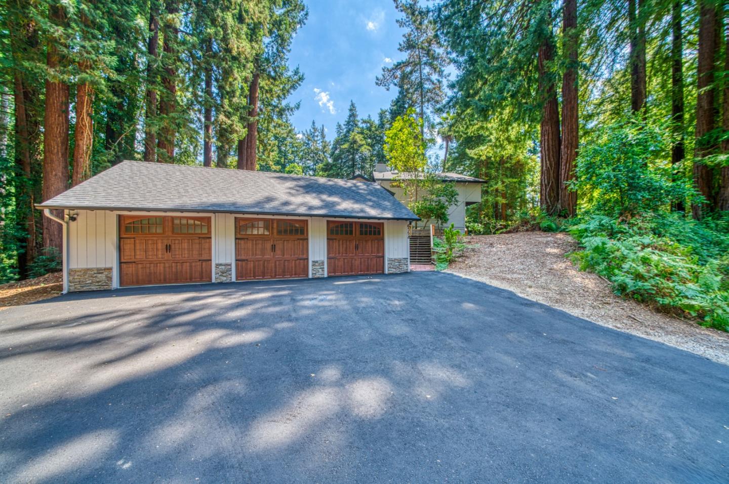 Welcome to Zen Living in Soquel. The almost half acre property, situated in a small, exclusive neighborhood on Glen Haven Road, is literally a stones throw from the Enchanted Forest at Land of Medicine Buddha. The home's location is beautiful & serene yet accessible, less than 5 minutes to the heart of the Soquel Village. Floor plan has two legal kitchens, along w/ 2nd entranced & driveway, lending itself to dual living. New roof, other recent improvements: new main electrical panel; rain gutters; asphalt driveway & front path; high-end garage doors & openers w/ battery backup; waterproof LVP floors in kitchen, dining room and mud room; mineral-composite kitchen counters w/ a granite-composite sink & built-in drainboard; kitchen faucet and disposal unit; redwood deck sections; and of course, all new carpet and paint. There are still some projects for you to enjoy doing! Detached 3 car garage has an extra-large, 700 square-foot storage loft. And room for 3 additional cars to park
