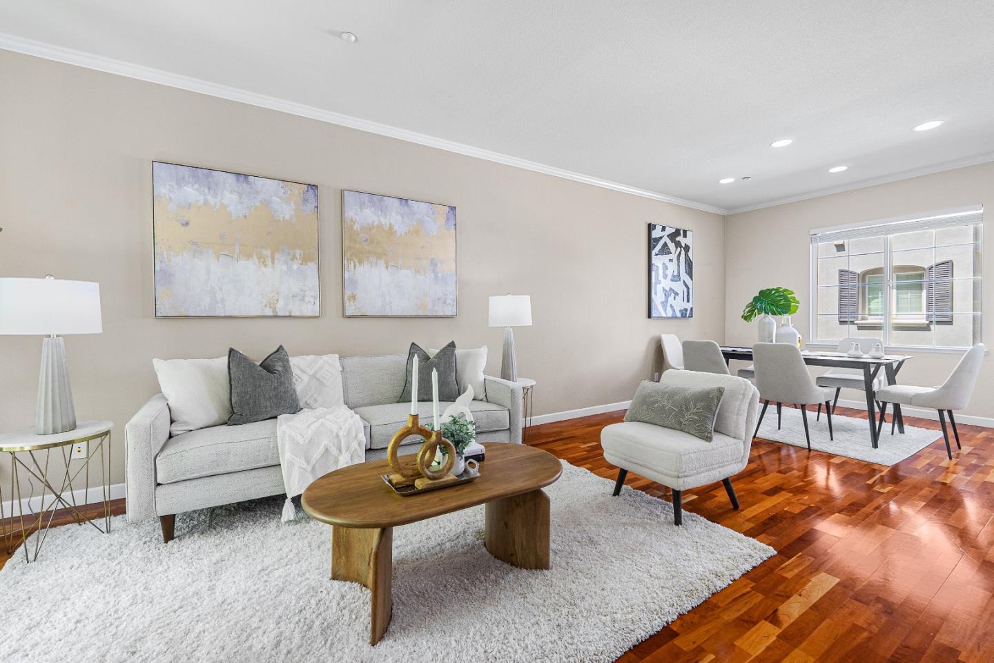This home features a spacious front yard perfect for BBQs and entertainment. Large1,600 sqft. floor plan offers 3 beds 2.5 baths, and top-tier amenities. Gourmet kitchen adorned with ample cabinets, stainless steel appliances. The oversized Master Suite ensures relaxation with a walk-in closet and an en-suite featuring dual sinks, shower, and tub. Many smart home integrations such as the Nest thermostat, August door lock, MyQ smart garage door system, and Ring smart doorbell ensure contemporary living. Benefit from central heating and cooling, an attached 2-car garage, and dual-pane windows for year-round comfort. Community amenities include a greenbelt, pool, and barbecue areas with modest HOA fees. Proximity to tech giants like Google, Amazon, and Facebook's Sunnyvale campus, rapid access to highways 101 and 237, and a short walk to VTA, Seven Seas park, and various shops, make this home a harmonious blend of convenience, luxury, and modernity - a true gem!