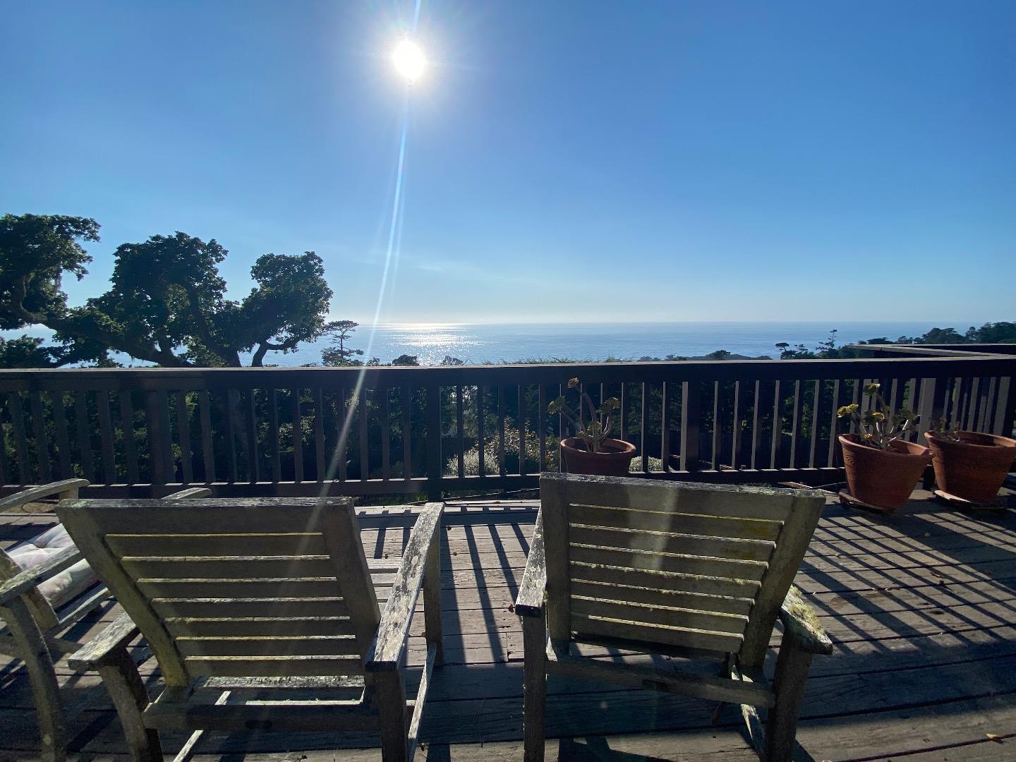 Spectacular ocean views from every room in this very private home on 1.6 acres. Rustic wood interior with modern features evokes feelings of warmth and comfort and presents an auro of timeless beauty. 2 bedrooms plus office/bedroom and 2 full bathrooms in the main house and studio with bathroom behind oversized 2 car garage. Modern kitchen with skylights, granite countertops Miele and SubZero appliances overlooks great room with fireplace, skylights at crest of high vaultred ceilings and the sparkling ocean beyond. Master retreat with fireplace surrounded by walls of built-in bookcases, skylights and slider to private ocean view deck. Master bathroom with high valuted ceiling, skylights, multiple closets, double sinks, oversized tub with ocean views. Separate ocean view unit with private entrance for guests, artist studio, wellness retreat, au pair etc. Oversized 2 car garage with electric car charging port. 2 Basement areas for wine and storage. Whole house generator. Needs a little TLC.