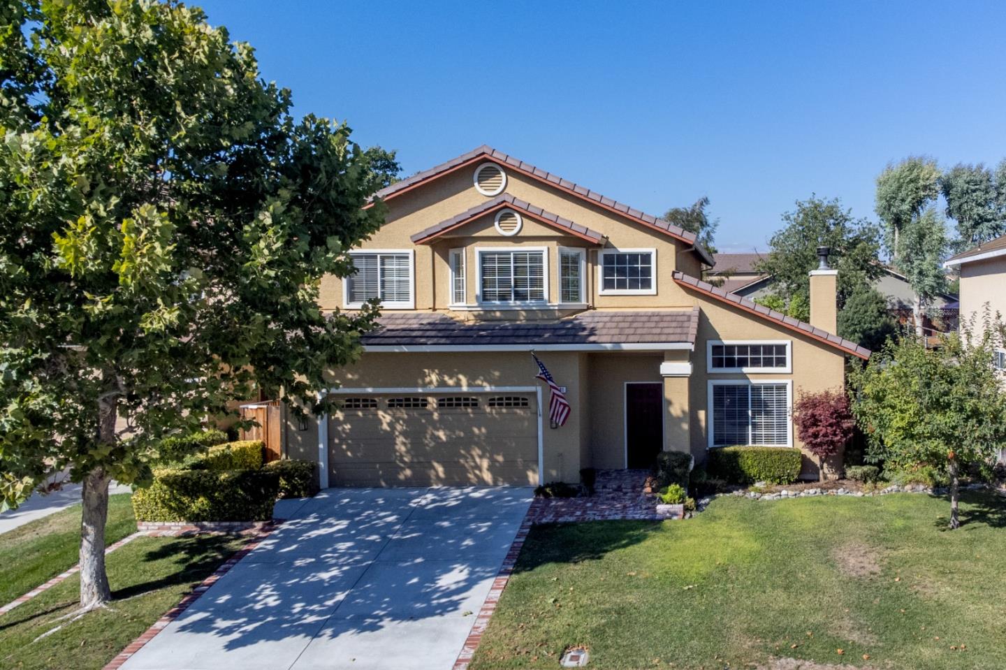 Here is a opportunity to own a very light and bright 5 bedroom home in the southwest area of Hollister. High ceilings as you enter the home gives the formal living room and formal dining area a very spacious feel. Large kitchen area with a abundance of cabinets, an island, and lots of counter space. Stainless steel appliances. Granite counter top and a beautiful tile back splash. Comfortable family room with a wood burning fireplace. Downstairs bedroom with a full bath. Primary bedroom has a walk in closet, Primary bath has dual sinks, stall shower and a oversized tub. New carpet through out. Central AC. Beautiful back yard with wood deck and mature landscaping in the back and the front of the home. Here is a home you will not want to miss.