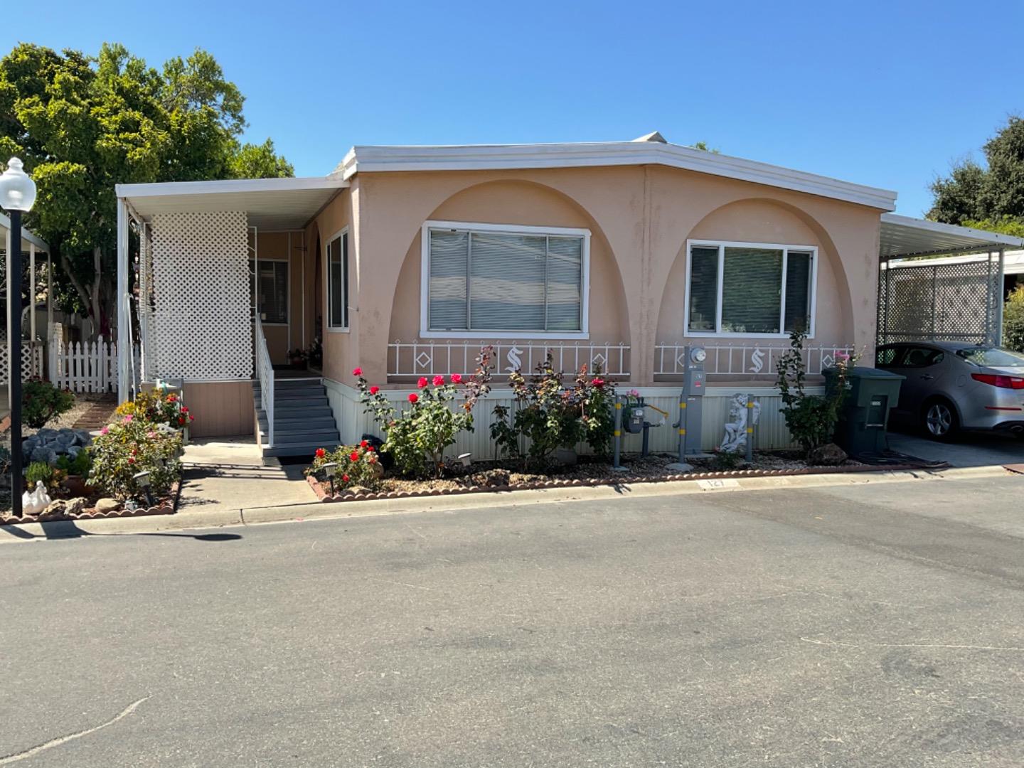 Senior Community Hacienda Valley Estates in Morgan Hill! Presents this Mobile Home two bedrooms and two full baths with a spacious interior. Primary suite is open and roomy, and a well-lit interior with direct access to its very own bathroom. Indoor separate laundry area. Fenced yard with private patio just off kitchen and family room can be use as storage. Back yard with Fruit trees a peaceful area, perfect for that morning coffee with a good reading book. Mostly original but clean! 2-car carport with a low space rent of $756. The community amenities include pool and club house. Close from Morgan Hills downtown shops and restaurants, easy commute to the Silicon Valley.