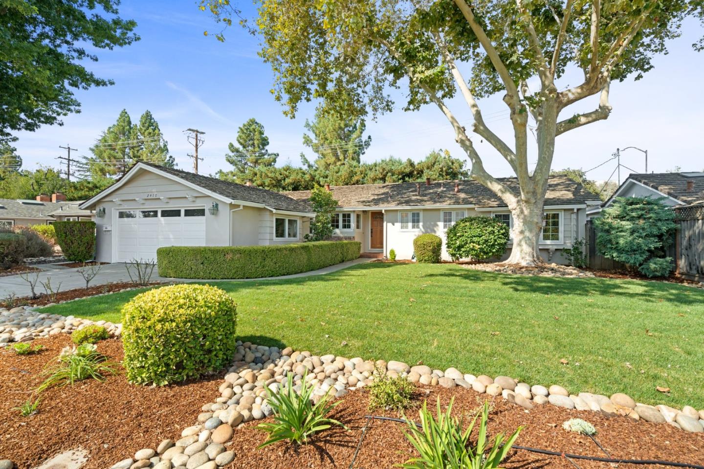 BEAUTIFULLY UPDATED WAVERLY PARK HOME DELIVERS STYLE & EASE | Casual elegance defines this excellently located home. Random-plank hardwood floors and beamed cathedral ceilings nod to its rich character, while central cooling and a variety of upgrades instill comfort and convenience. Designed to fit living and dining spaces, the central gathering room is anchored by a fireplace and bookcases. Granite slabs and beautiful wood cabinetry elevate the kitchen, which includes stainless appliances and is flanked by casual dining and family areas. All bedrooms are fitted with luxury flooring, and the primary suite boasts window seating and dual vanities. A large patio with pergola overlooks a newly landscaped backyard - perfect for outdoor enjoyment. Stroll or roll to Stevens Creek Trail and multiple parks. Excellent proximity to shopping, major tech campuses, Downtown Mountain View, freeways, and superb schools like Imai Elementary, Graham Middle, and Mountain View High (buyer to verify).