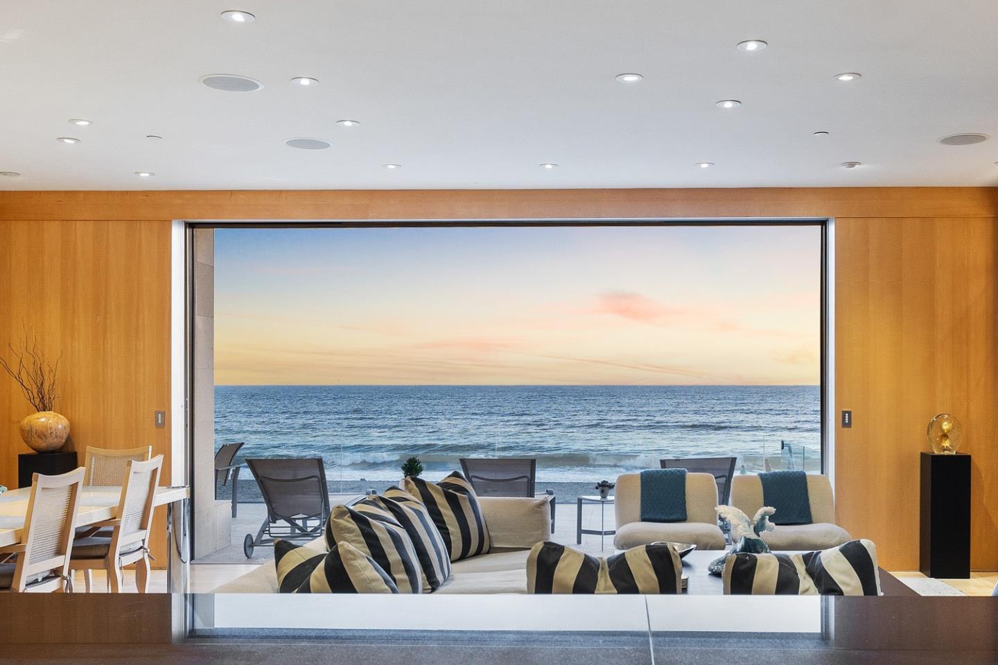 Behind private gates, this residence isn't just a home; it's a meticulously crafted masterpiece envisioned by Sally Sirkin Lewis. An inductee of the Interior Design Hall of Fame & featured on Architectural Digest's prestigious AD100 list, her influence is woven throughout. Every aspect of this residence bears the hallmark of excellence, with custom furniture meticulously curated & designed by her L.A.-based company, J. Robert Scott. Embodying the designer's unique interpretation of California style, this home seamlessly blends elements of "modern classic" & "transitional" styles. A gracefully curved maple wood staircase welcomes you, setting the tone for the main level, where maple wood accents grace the flooring & walls. In the great room, expansive sliding doors virtually vanish into the walls, uniting the maple flooring with a limestone patio. This strategic design invites the ocean breeze & sounds of waves into the living space. The residence boasts high ceilings with precisely positioned lighting fixtures & an abundance of skylights, ensuring a harmonious play of light throughout. A Sonos audio system & radiant heating add to the modern conveniences. A bonus rec room, featuring roll-up doors open to an outdoor patio steps to the sand.