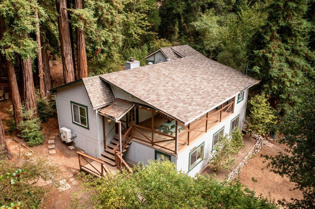 So many upgrades in this lovely Boulder Creek home! Built in 1936, this home has kept its vintage beauty and quality through all of the improvements throughout the years. Recently added Mitsubishi split inverter AC/heater, electrical panel and other related renovations, structural upgrades, and so much more. Hard to find covered porch overlooks front of property and beyond. Living room has beautiful wood ceiling, fireplace, and huge picture window. Separate dining room for big fun dinners or eat in the spacious country kitchen that has lots of storage and counter space. Huge bonus room downstairs for workshop, art studio, or turn it into an awesome office! Front yard is perfect for sun worshippers, back yard is great for nature lovers with the amazing ring of redwood trees. 40 year roof installed about 10 years ago. Come see this beauty with all the extras on over half acre.