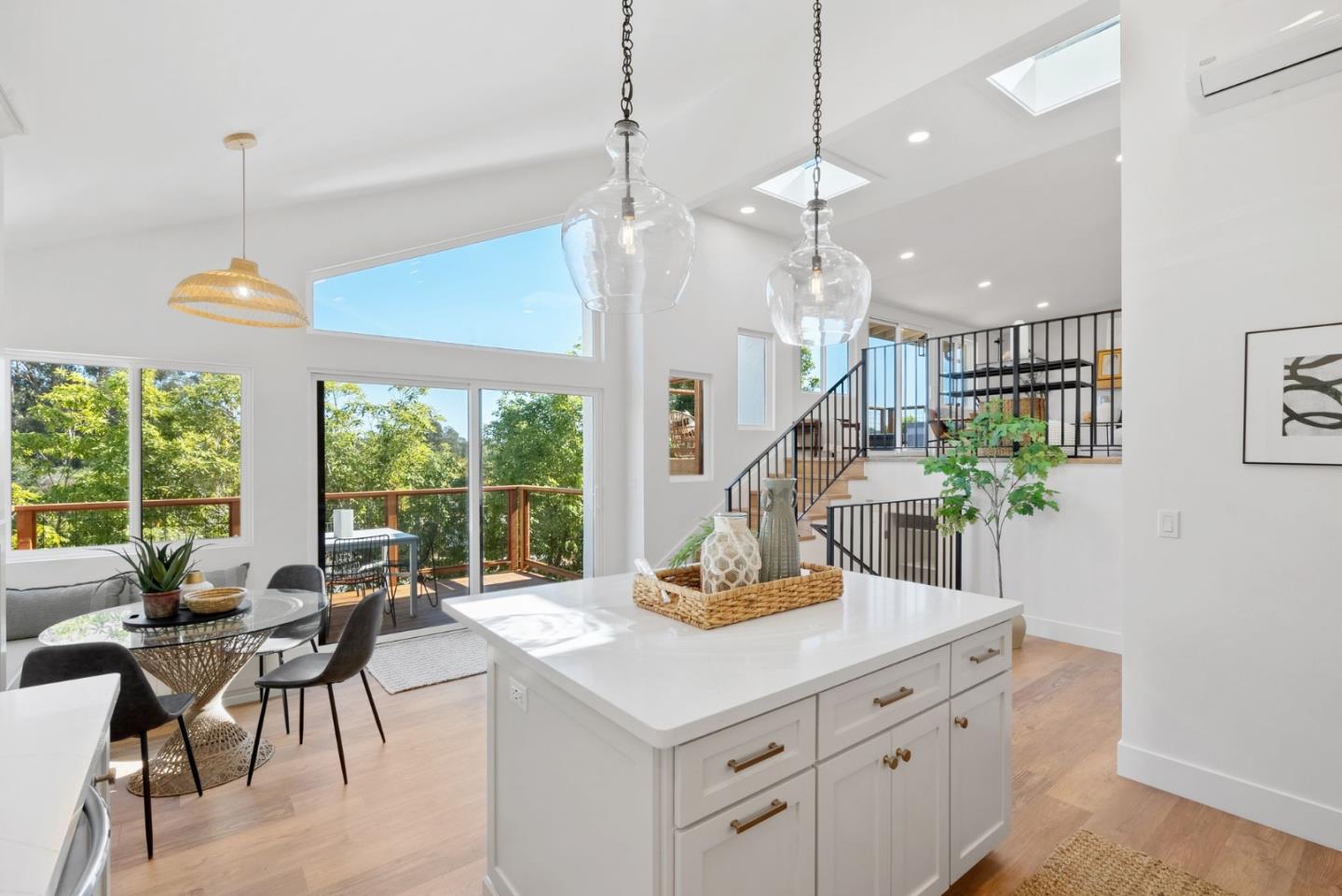 Meticulously remodeled contemporary style home in the heart of Soquel, expertly redesigned by WS Builders. This home boasts a plethora of upgrades including new windows, electrical panels, Gaia LVP flooring throughout, forced air heating & AC units, garage door, fresh paint & texture, lighting & more! Every detail has been carefully considered, making this property a true turnkey gem. The dream kitchen has high ceilings, quartz countertops, an inviting island with seating, elegant light fixtures & dining area with a built-in bench. With 3 bedrooms & 3 full baths, plus a bonus family room on the lower level, this home provides ample space for both relaxation & entertainment. Multiple decks invite you to unwind outdoors and enjoy the stellar Soquel weather and take in the views stretching over the town & catch a glimpse of the ocean. Situated in a sweet neighborhood close to town, this home has the perfect blend of tranquility & accessibility.