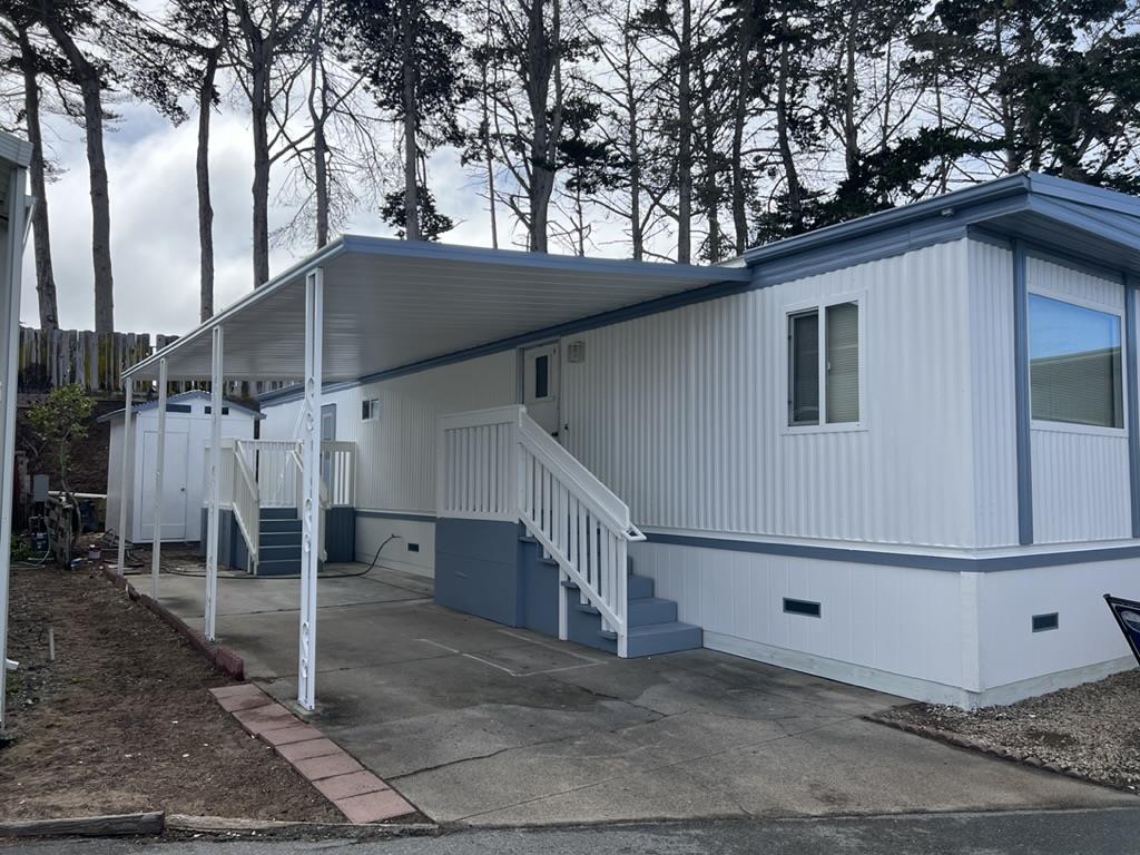 Best price in Marina ! Come see great mobile home in the El Rancho mobile home park , park is designated as 55 and older living space ~ Exterior is being freshly painted and all skirting is being repaired or replaced Great unit with 2 bedrooms , built in closet armories and loads of hanging space 1 large bath with custom step in shower and good light. Large kitchen space allows for dining table or hutch and the living room is in the middle off of the road .. back yard space is enough for gardening and a large storage shed included . Make your appointment now !