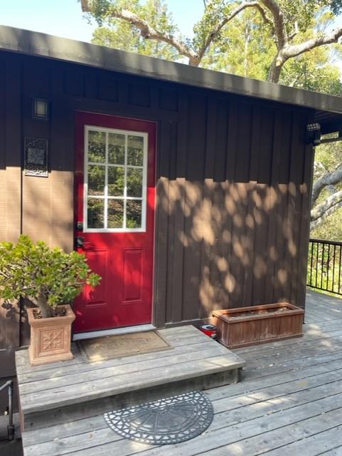 A long tree lined driveway brings you to this absolutely charming cottage... Kitchen features a gas cooktop...Lots of cabinets and a sash window over the kitchen sink... Living room with parquet hardwood, vintage fireplace (not functional), and french doors that open to a deck overlooking oaks and creek... Larger primary bedroom has it's own deck, french doors, huge walk-in closet, and bath complete this retreat... Inside laundry with window and folding shelf... Beautiful updated hall bath offers full size tub with overhead shower... This property is close to downtown Los Altos with it's many restaurants and events.... bikeable...walkable... Great Los Altos schools!