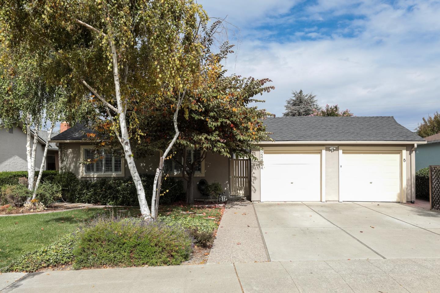 Well maintained and centrally located duplex. Enter Unit B through a private side entrance. Large living room with open floor plan. Hardwood floors throughout kitchen, living room and both bedrooms. Kitchen has ample wood cabinets, granite counter tops, dishwasher, refrigerator, microwave and all electric range with solid cook top. Dining area opens to private large patio with deck. Laundry with new washer/dryer is in the detached 1-car garage. Two spacious bedrooms with central tiled bathroom with shower over tub complete this lovely home. Central forced air heat plus A/C! Large, welcoming back yard with deck has lots of plantings: roses, planter boxes, plus prolific lemon and apple trees! Conveniently located close to public transportation, San Antonio Shopping Center, ShowPlace Icon Movie theatre, several parks, Caltrain, and the Google RLS1 campus. Excellent schools (tenant to verify)! No smokers. No pets.